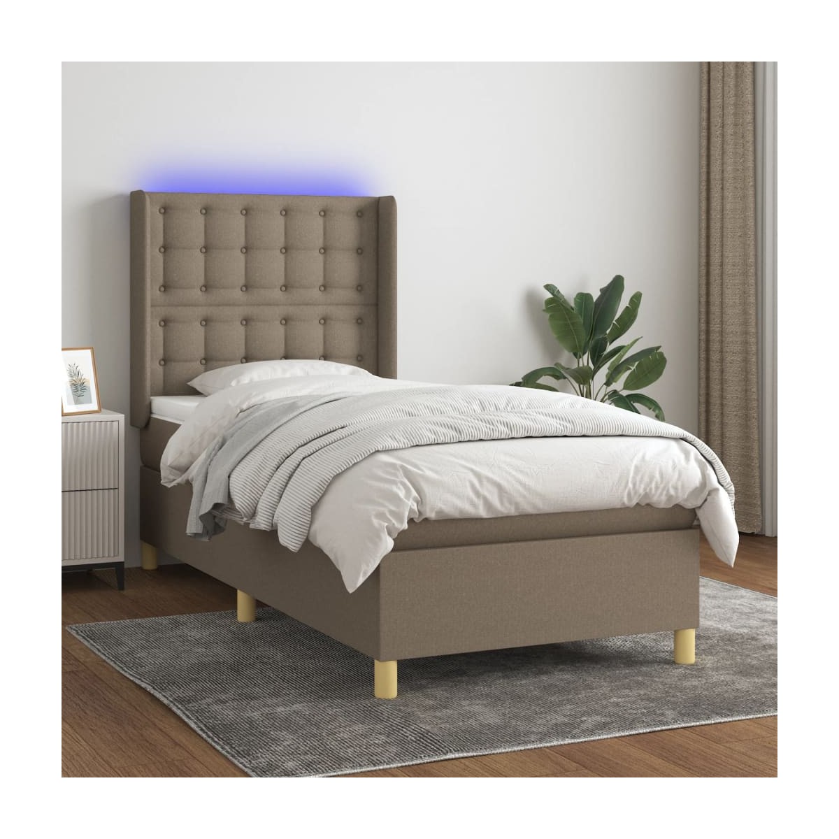 Utiliza esta cama tipo box spring con colchón y luces LED para disfrutar de un sueño reparador. Será el centro de atención del dormitorio. Material de primera calidad: La tela posee un aspecto sencillo y limpio, y es transpirable y duradera.Cabecero práctico: El cabecero de la cama es ajustable en altura según tus preferencias. El cabecero de la cama te proporciona un excelente apoyo para la espalda mientras estás sentado en la cama para leer o ver la televisión.Tira de LED de colores: Alegra la oscuridad con luces LED de colores.Colchón de muelles ensacados: El muelle ensacado individual incorporado es conocido por su altísima calidad, al tiempo que garantiza un alto nivel de durabilidad y adaptabilidad. Puede absorber eficazmente el ruido y los golpes causados por los lanzamientos y los giros.Protector de colchón respetuoso con la piel: El protector de colchón tiene una funda de tejido resistente y respetuoso con la piel, que lo hace suave y confortable. Nota:Por razones de higiene, el colchón no puede devolverse si se ha quitado o abierto el embalaje.Únicamente puedes cortar por la parte con el símbolo de las tijeras y únicamente la parte con el USB seguirá funcionando como antes.Cada producto viene con un manual de montaje en la caja para facilitar el montaje.El producto tiene un conector USB, pero no se incluye la fuente de alimentación USB de 5 V certificada.