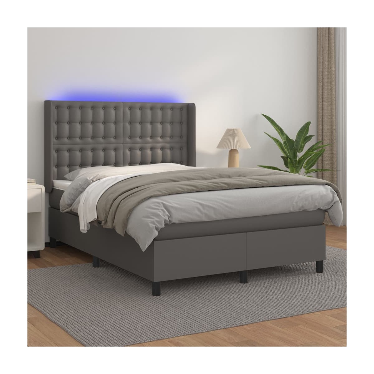 Utiliza esta cama tipo box spring con colchón y luces LED para disfrutar de un sueño reparador. Será el centro de atención del dormitorio. Material duradero: El cuero sintético de primera calidad es un material muy duradero. Es resistente a las manchas, por lo que es fácil de limpiar con un paño húmedo. Además, la superficie lisa da un aspecto lujoso y la belleza del cuero auténtico.Cabecero práctico: El cabecero de la cama es ajustable en altura según tus preferencias. El cabecero de la cama te proporciona un excelente apoyo para la espalda mientras estás sentado en la cama para leer o ver la televisión.Tira de LED de colores: Alegra la oscuridad con luces LED de colores.Colchón de muelles ensacados: El muelle ensacado individual incorporado es conocido por su altísima calidad, al tiempo que garantiza un alto nivel de durabilidad y adaptabilidad. Puede absorber eficazmente el ruido y los golpes causados por los lanzamientos y los giros.Protector de colchón respetuoso con la piel: El protector de colchón tiene una funda de tejido resistente y respetuoso con la piel, que lo hace suave y confortable. Nota:Por razones de higiene, el colchón no puede devolverse si se ha quitado o abierto el embalaje.Únicamente puedes cortar por la parte con el símbolo de las tijeras y únicamente la parte con el USB seguirá funcionando como antes.Cada producto viene con un manual de montaje en la caja para facilitar el montaje.El producto tiene un conector USB, pero no se incluye la fuente de alimentación USB de 5 V certificada.