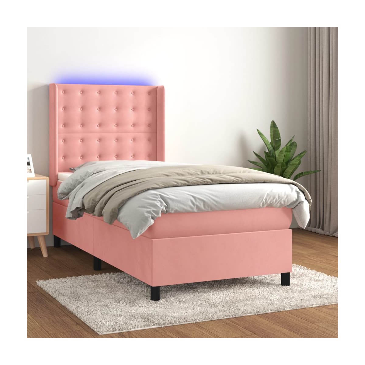 Utiliza esta cama tipo box spring con colchón y luces LED para disfrutar de un sueño reparador. Será el centro de atención del dormitorio. Terciopelo suave: El terciopelo es una tela suave y lujosa, reconocida por su denso pelo de fibras cortadas de forma uniforme que tienen una suave pelusa. La tela de terciopelo posee un característico y suave tacto, lo que hace que sea cómoda al tacto.Cabecero práctico: El cabecero de la cama es ajustable en altura según tus preferencias. El cabecero de la cama te proporciona un excelente apoyo para la espalda mientras estás sentado en la cama para leer o ver la televisión.Tira de LED de colores: Alegra la oscuridad con luces LED de colores.Colchón de muelles ensacados: El muelle ensacado individual incorporado es conocido por su altísima calidad, al tiempo que garantiza un alto nivel de durabilidad y adaptabilidad. Puede absorber eficazmente el ruido y los golpes causados por los lanzamientos y los giros.Protector de colchón respetuoso con la piel: El protector de colchón tiene una funda de tejido resistente y respetuoso con la piel, que lo hace suave y confortable. Nota:Por razones de higiene, el colchón no puede devolverse si se ha quitado o abierto el embalaje.Únicamente puedes cortar por la parte con el símbolo de las tijeras y únicamente la parte con el USB seguirá funcionando como antes.Cada producto viene con un manual de montaje en la caja para facilitar el montaje.El producto tiene un conector USB, pero no se incluye la fuente de alimentación USB de 5 V certificada.