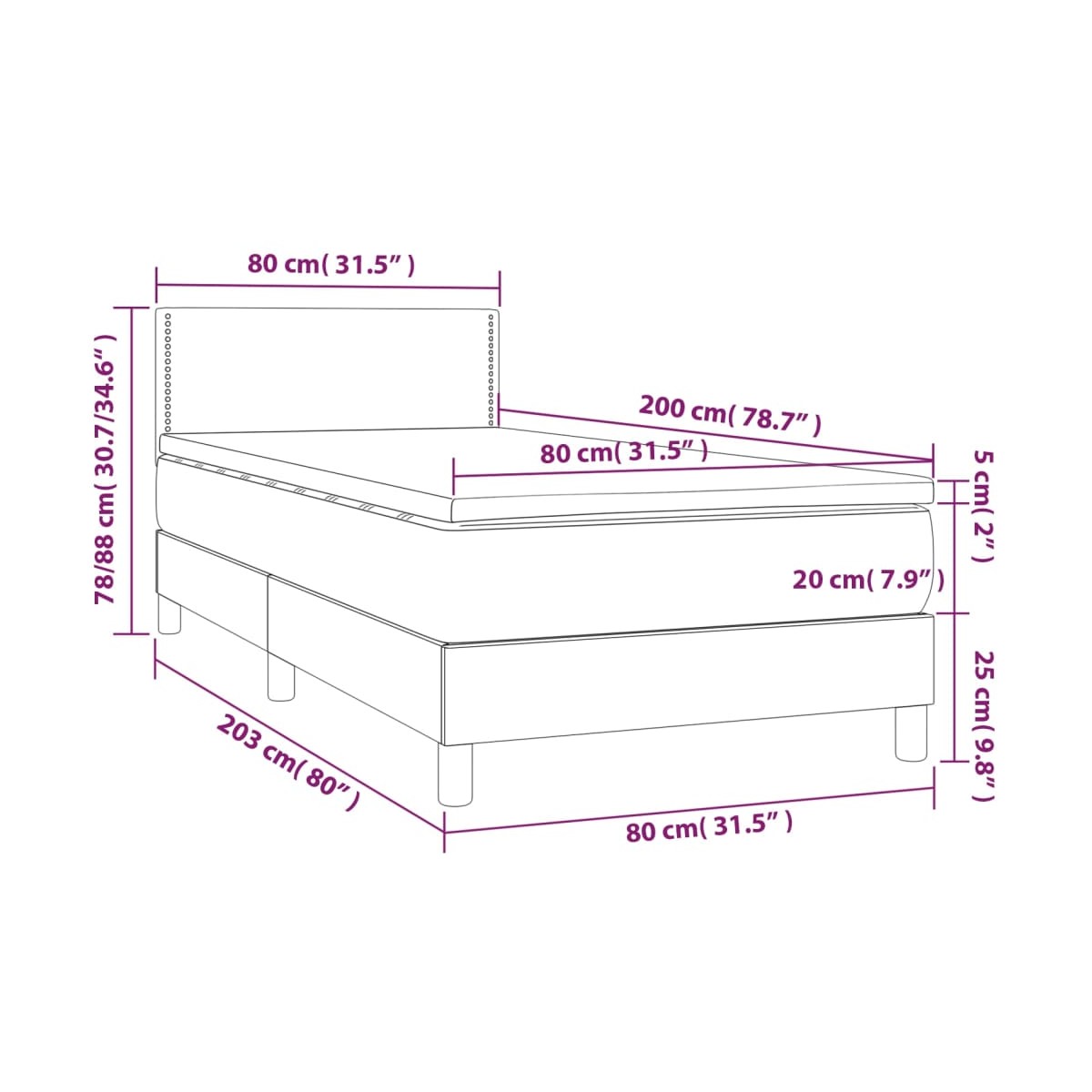 - Dimensiones: 80 x 200 x 20 cm (ancho x largo x alto)