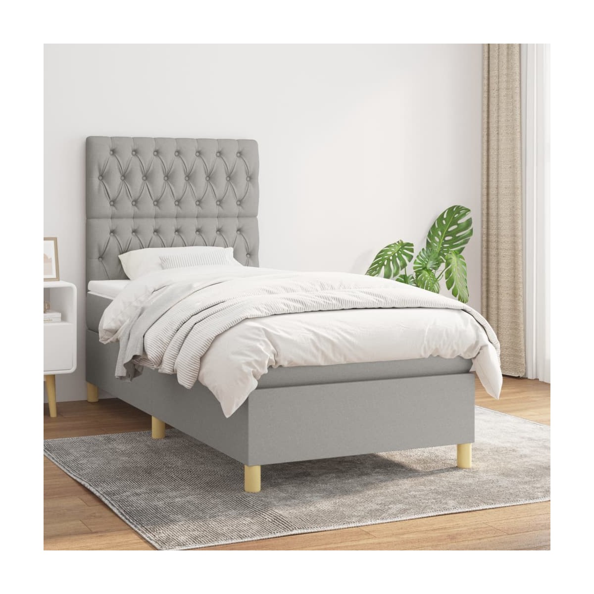 Utiliza esta cama de muelles para disfrutar de un sueño reparador. Te ofrece la máxima relajación y un sueño placentero. Material de primera calidad: La tela posee un aspecto sencillo y limpio, y es transpirable y duradera.Cabecero práctico: El cabecero de la cama es ajustable en altura según tus preferencias. El cabecero de la cama te proporciona un excelente apoyo para la espalda mientras estás sentado en la cama para leer o ver la televisión.Colchón de muelles ensacados: El muelle ensacado individual incorporado es conocido por su altísima calidad, al tiempo que garantiza un alto nivel de durabilidad y adaptabilidad. Puede absorber eficazmente el ruido y los golpes causados por los lanzamientos y los giros.Soporte de dureza media: El colchón de la cama proporciona perfectamente una mayor estabilidad y el nivel justo de firmeza sin sacrificar la comodidad. Por tanto, es ideal para quienes duermen de espaldas o boca abajo.Protector de colchón respetuoso con la piel: El protector de colchón tiene una funda de tejido resistente y respetuoso con la piel, que lo hace suave y confortable. Nota:Por razones de higiene, el colchón no puede devolverse si se ha quitado o abierto el embalaje.Cada producto viene con un manual de montaje en la caja para facilitar el montaje.