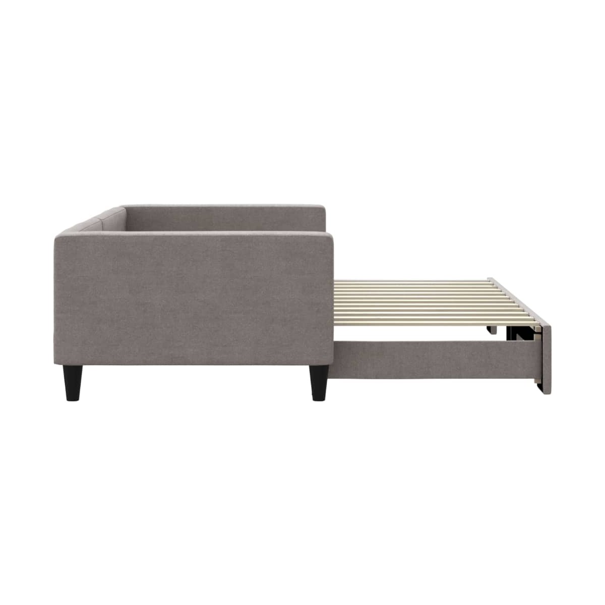 Este sofá cama 2 en 1 con cama nido, que sirve como sofá y cama, es un complemento práctico y llamativo para tu salón o dormitorio. Sofá cama versátil: El sofá cama funciona como sofá durante el día y se convierte fácilmente en una cama doble por la noche sacando la cama nido, lo que proporciona una solución práctica para recibir invitados y maximizar el espacio. Tela duradera: La cama de invitados está hecha de tela, que posee un aspecto sencillo y limpio, además de ser transpirable y duradera. Construcción maciza: La estructura de madera y metal de la cama nido garantiza su solidez y estabilidad. Información útil:Los colchones no están incluidos en este sofá cama. Ofrecemos una variada selección de colchones. Puedes echar un vistazo a nuestra tienda para buscar el correspondiente colchón.
