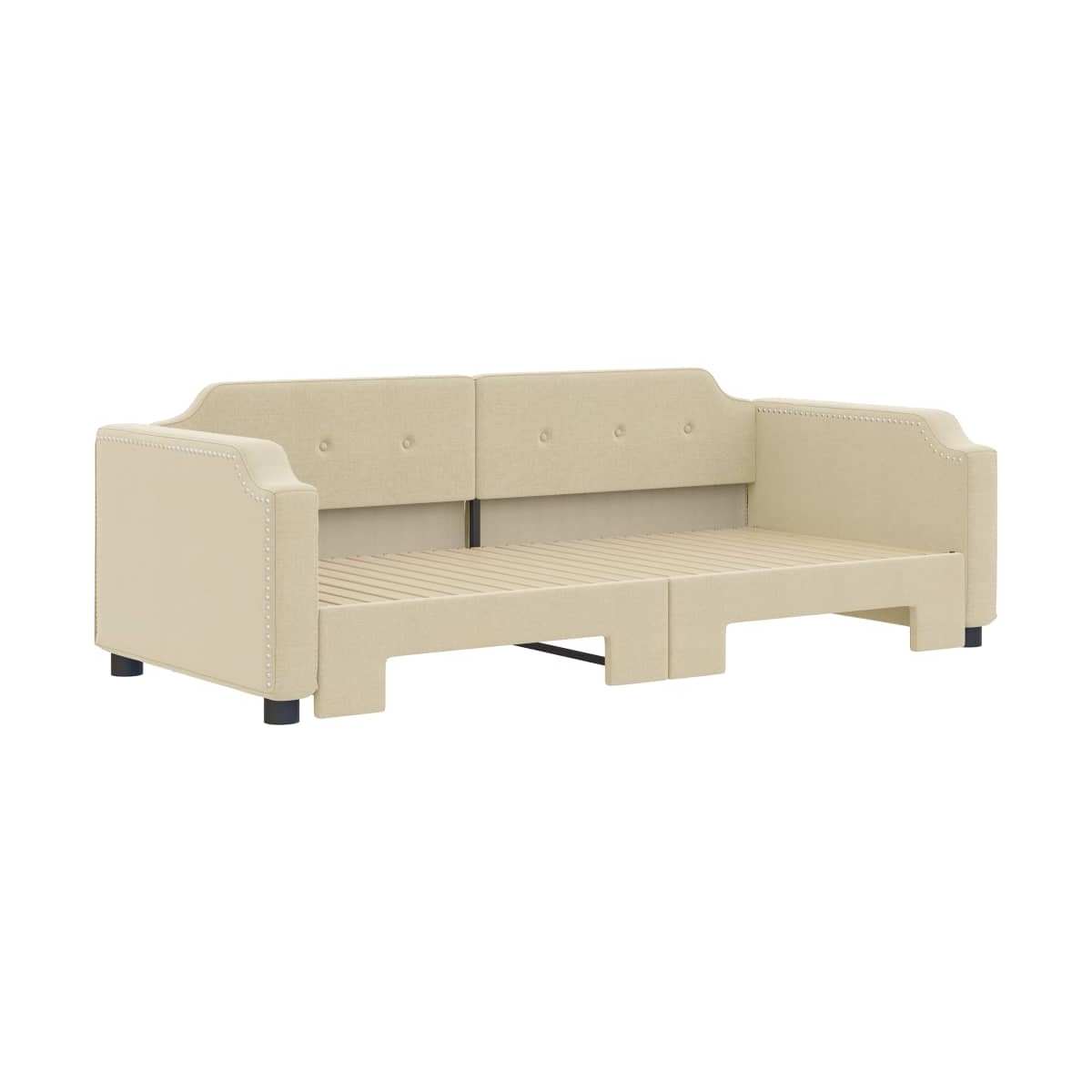 Este sofá cama 2 en 1 con cama nido, que sirve como sofá y cama, es un complemento práctico y llamativo para tu salón o dormitorio. Sofá cama versátil: El sofá cama funciona como sofá durante el día y se convierte fácilmente en una cama doble por la noche sacando la cama nido, lo que proporciona una solución práctica para recibir invitados y maximizar el espacio. Tela duradera: La cama de invitados está hecha de tela, que posee un aspecto sencillo y limpio, además de ser transpirable y duradera. Construcción maciza: La estructura de madera y metal de la cama nido garantiza su solidez y estabilidad. Información útil:Los colchones no están incluidos en este sofá cama. Ofrecemos una variada selección de colchones. Puedes echar un vistazo a nuestra tienda para buscar el correspondiente colchón.