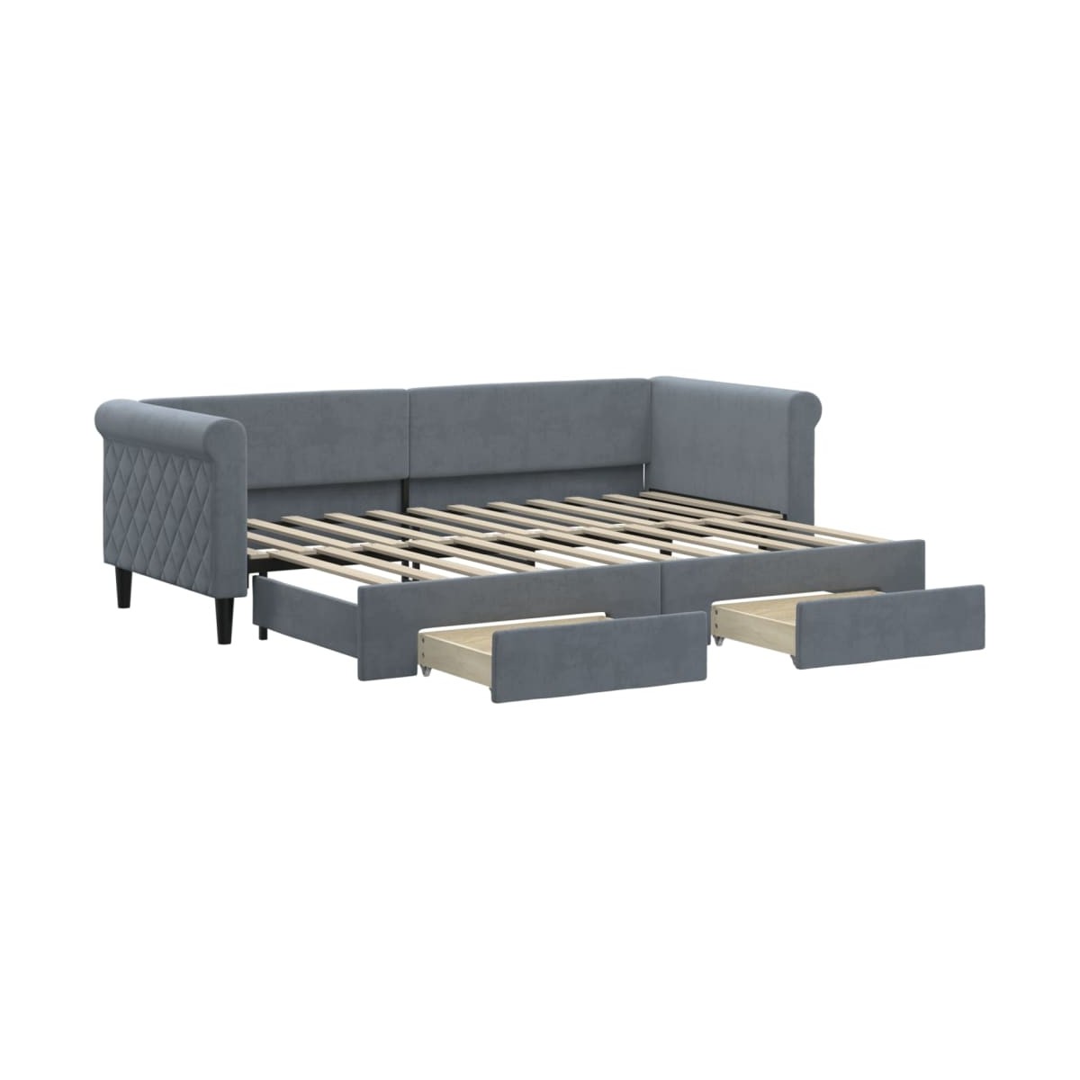 Este sofá cama 2 en 1 con cama nido, que sirve como sofá y cama, es un complemento práctico y llamativo para tu salón o dormitorio. Sofá cama versátil: El sofá cama funciona como sofá durante el día y se convierte fácilmente en una cama doble por la noche sacando la cama nido, lo que proporciona una solución práctica para recibir invitados y maximizar el espacio.Amplio espacio de almacenamiento: Esta cama de invitados tiene dos cajones con ruedas que brindan un amplio espacio para guardar ropa, calcetines, juguetes, cojines, etc.Terciopelo suave y construcción sólida: Este sofá cama tiene una estructura resistente hecha de madera y metal y está tapizado en terciopelo suave y cómodo.Diseño moderno: ¡El sofá cama tiene un diseño moderno con líneas nítidas, un aspecto minimalista, así como luz natural, y añadirá un estilo moderno a la casa! Información útil:El colchón no está incluido con la cama. Ofrecemos una variada selección de colchones. Puedes echar un vistazo a nuestra tienda para buscar el correspondiente colchón.