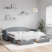 Este sofá cama 2 en 1 con cama nido, que sirve como sofá y cama, es un complemento práctico y llamativo para tu salón o dormitorio. Sofá cama versátil: El sofá cama funciona como sofá durante el día y se convierte fácilmente en una cama doble por la noche sacando la cama nido, lo que proporciona una solución práctica para recibir invitados y maximizar el espacio.Amplio espacio de almacenamiento: Esta cama de invitados tiene dos cajones con ruedas que brindan un amplio espacio para guardar ropa, calcetines, juguetes, cojines, etc.Tela duradera y construcción sólida: Este sofá cama tiene una estructura resistente hecha de madera y metal y está tapizado con una tela duradera y cómoda. Información útil:Los colchones no están incluidos en este sofá cama. Ofrecemos una variada selección de colchones. Puedes echar un vistazo a nuestra tienda para buscar el correspondiente colchón.