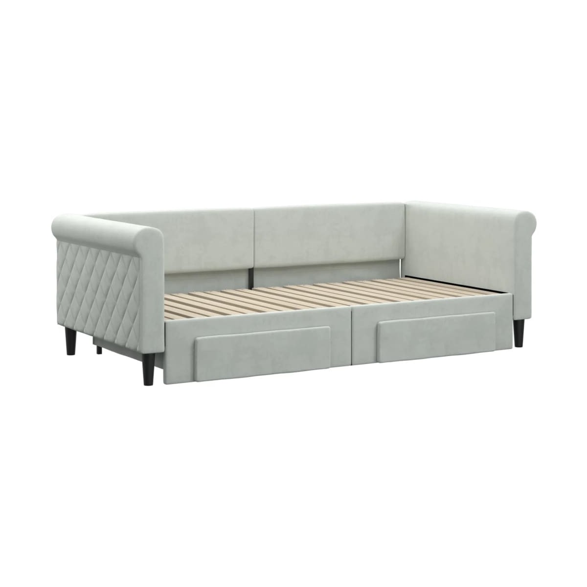 Este sofá cama 2 en 1 con cama nido, que sirve como sofá y cama, es un complemento práctico y llamativo para tu salón o dormitorio. Sofá cama versátil: El sofá cama funciona como sofá durante el día y se convierte fácilmente en una cama doble por la noche sacando la cama nido, lo que proporciona una solución práctica para recibir invitados y maximizar el espacio.Amplio espacio de almacenamiento: Esta cama de invitados tiene dos cajones con ruedas que brindan un amplio espacio para guardar ropa, calcetines, juguetes, cojines, etc.Terciopelo suave y construcción sólida: Este sofá cama tiene una estructura resistente hecha de madera y metal y está tapizado en terciopelo suave y cómodo.Diseño moderno: ¡El sofá cama tiene un diseño moderno con líneas nítidas, un aspecto minimalista, así como luz natural, y añadirá un estilo moderno a la casa! Información útil:El colchón no está incluido con la cama. Ofrecemos una variada selección de colchones. Puedes echar un vistazo a nuestra tienda para buscar el correspondiente colchón.