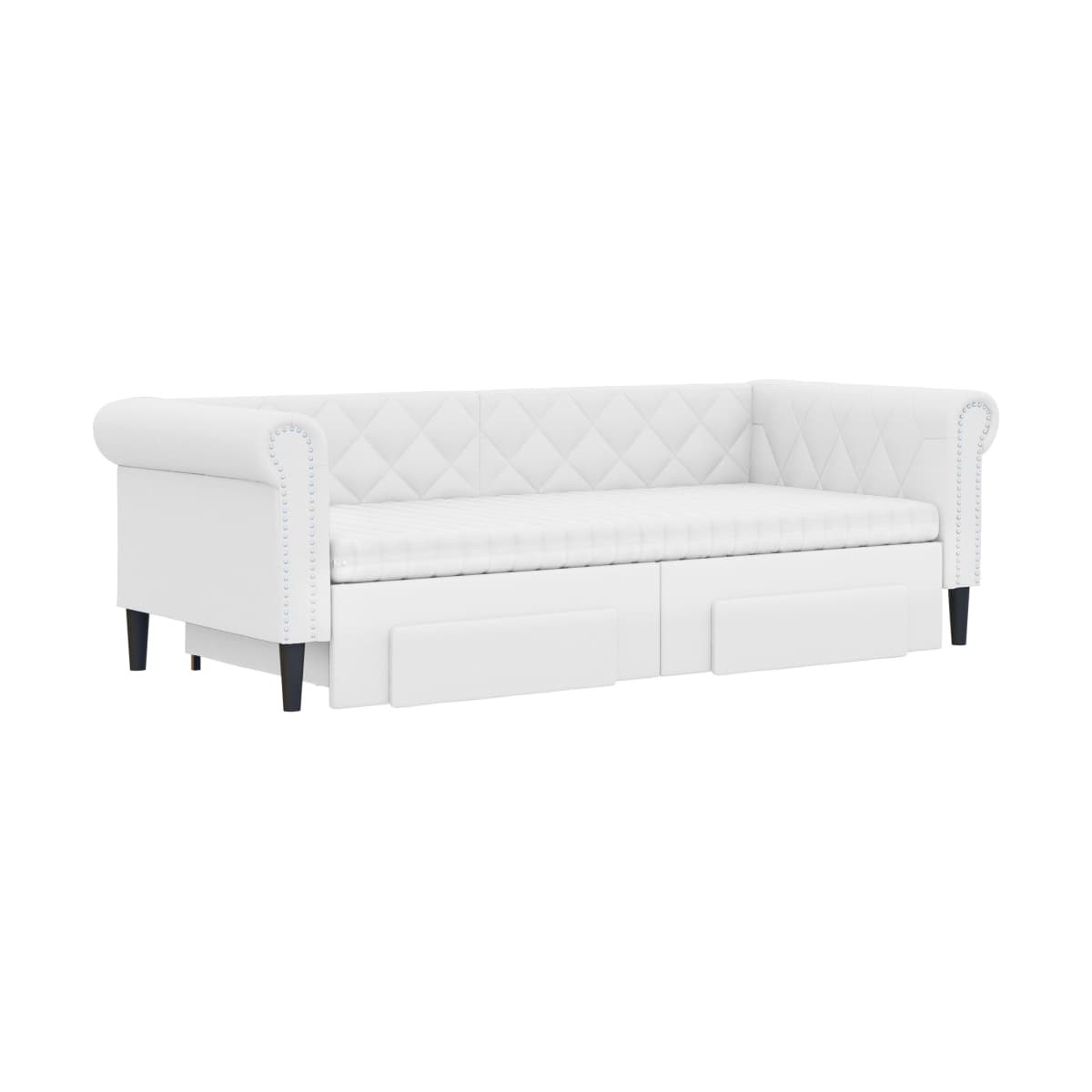 Este sofá cama 2 en 1 con cama nido, que sirve como sofá y cama, es un complemento práctico y llamativo para tu salón o dormitorio. Sofá cama versátil: El sofá cama funciona como sofá durante el día y se convierte fácilmente en una cama doble por la noche sacando la cama nido, lo que proporciona una solución práctica para recibir invitados y maximizar el espacio.Amplio espacio de almacenamiento: Esta cama de invitados tiene dos cajones con ruedas que brindan un amplio espacio para guardar ropa, calcetines, juguetes, cojines, etc.Cómodo colchón de espuma: Esta cama se suministra con dos colchones de espuma para un máximo apoyo y una comodidad óptima.Cuero sintético duradero y construcción maciza: Este sofá cama tiene una estructura resistente, hecha de madera y metal, y está tapizado con cuero sintético duradero y fácil de limpiar.