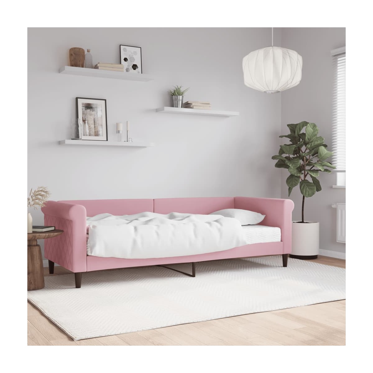 Este sofá cama 2 en 1 con colchón, que sirve como sofá y cama, es un complemento práctico y llamativo para tu salón o dormitorio. Sofá cama versátil: El sofá cama puede utilizarse como sofá durante el día o como cama por la noche, para tener una solución rápida para alojar a invitados que pasen la noche.Cómodo colchón de espuma: Esta cama se suministra con un colchón de espuma para un máximo apoyo y una comodidad óptima.Terciopelo suave y construcción sólida: Este sofá cama tiene una estructura resistente hecha de madera y metal y está tapizado en terciopelo suave y cómodo.Diseño moderno: ¡El sofá cama tiene un diseño moderno con líneas nítidas, un aspecto minimalista, así como luz natural, y añadirá un estilo moderno a la casa!