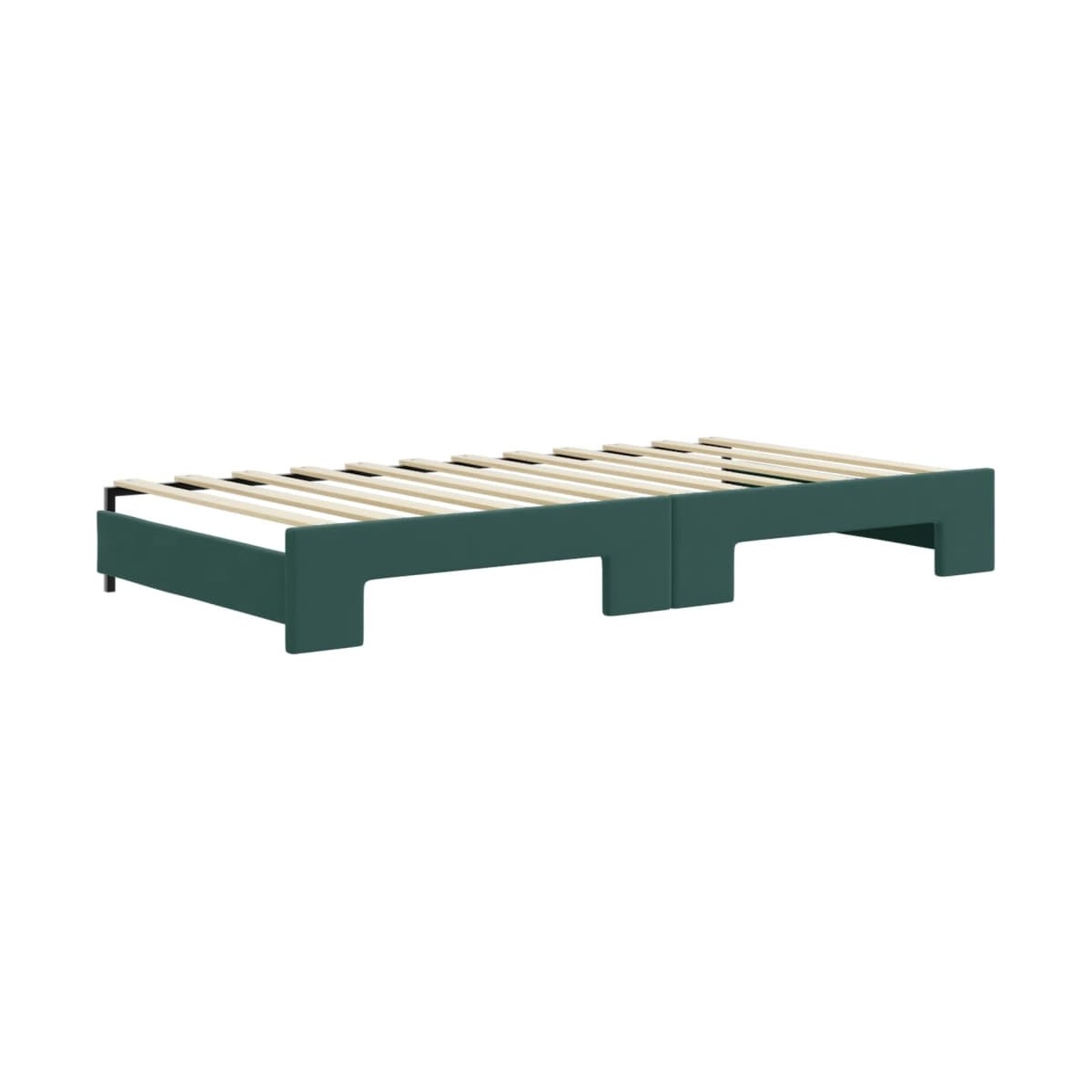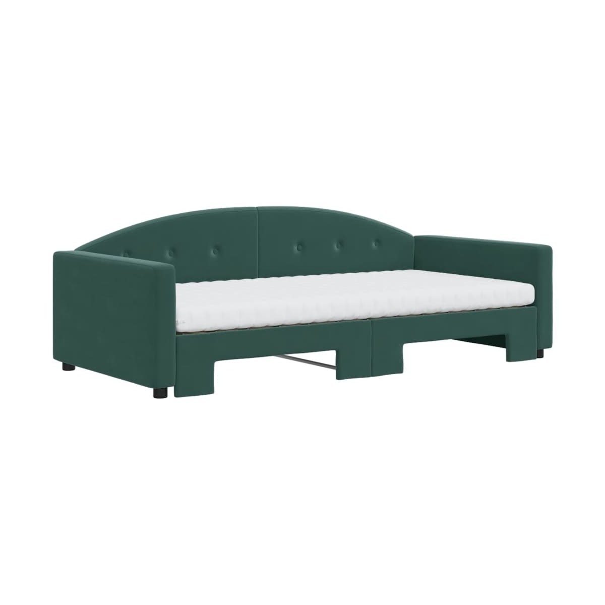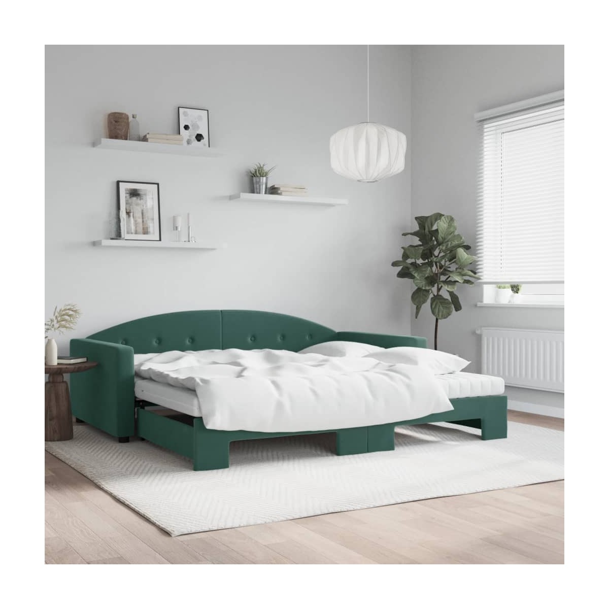 Este sofá cama 2 en 1 con cama nido y colchones, que sirve como sofá y cama, es un complemento práctico y llamativo para tu salón o dormitorio. Sofá cama versátil: El sofá cama funciona como sofá durante el día y se convierte fácilmente en una cama doble por la noche sacando la cama nido, lo que proporciona una solución práctica para recibir invitados y maximizar el espacio.Cómodo colchón de espuma: Esta cama se suministra con dos colchones de espuma para un máximo apoyo y una comodidad óptima. Terciopelo suave y construcción sólida: Este sofá cama tiene una estructura resistente hecha de madera y metal y está tapizado en terciopelo suave y cómodo.