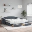 Este sofá cama 2 en 1 con cama nido, que sirve como sofá y cama, es un complemento práctico y llamativo para tu salón o dormitorio. Sofá cama versátil: El sofá cama funciona como sofá durante el día y se convierte fácilmente en una cama doble por la noche sacando la cama nido, lo que proporciona una solución práctica para recibir invitados y maximizar el espacio.Amplio espacio de almacenamiento: Esta cama de invitados tiene dos cajones con ruedas que brindan un amplio espacio para guardar ropa, calcetines, juguetes, cojines, etc.Cómodo colchón de espuma: Esta cama se suministra con dos colchones de espuma para un máximo apoyo y una comodidad óptima.Terciopelo suave y construcción sólida: Este sofá cama tiene una estructura resistente hecha de madera y metal y está tapizado en terciopelo suave y cómodo.