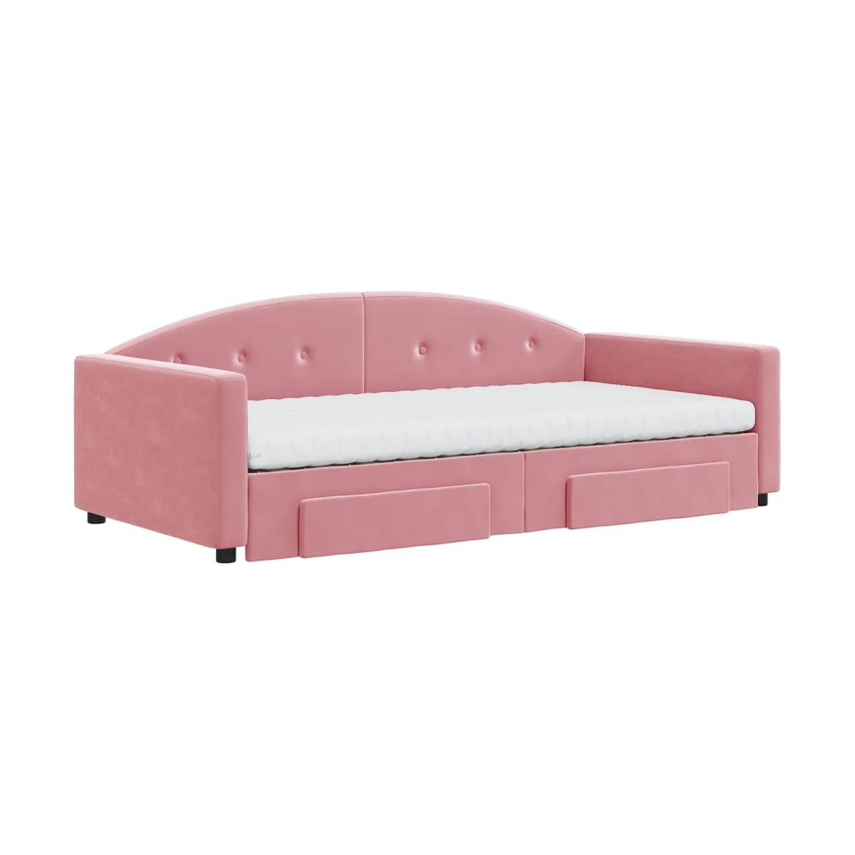 Este sofá cama 2 en 1 con cama nido y cajones, que sirve como sofá y cama, es un complemento práctico y llamativo para tu salón o dormitorio. Sofá cama versátil: El sofá cama funciona como sofá durante el día y se convierte fácilmente en una cama doble por la noche sacando la cama nido, lo que proporciona una solución práctica para recibir invitados y maximizar el espacio. Amplio espacio de almacenamiento: Esta cama de invitados tiene dos cajones con ruedas que brindan un amplio espacio para guardar ropa, calcetines, juguetes, cojines, etc. Cómodo colchón de espuma: Esta cama se suministra con dos colchones de espuma para un máximo apoyo y una comodidad óptima. Terciopelo suave y construcción sólida: Este sofá cama tiene una estructura resistente hecha de madera y metal y está tapizado en terciopelo suave y cómodo.