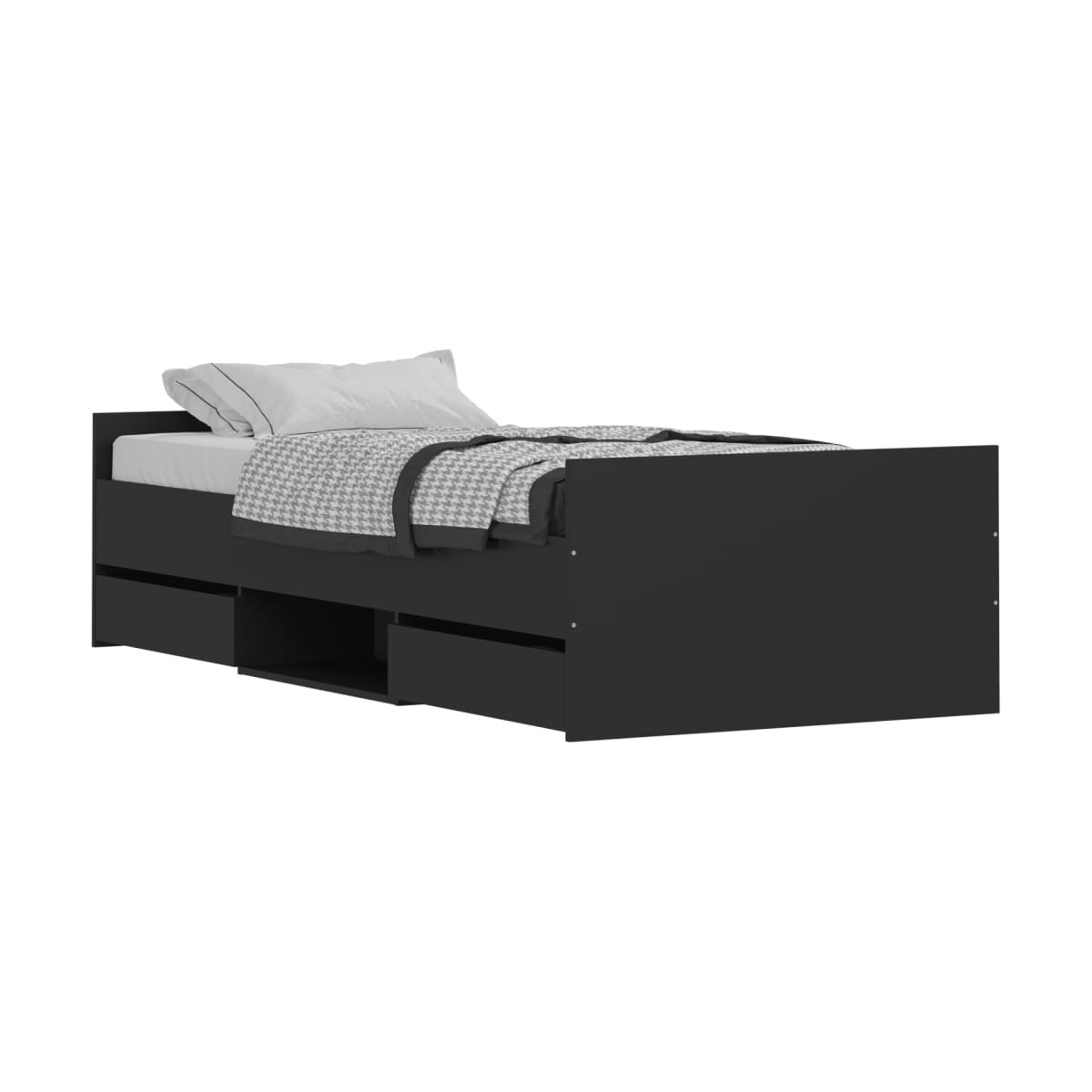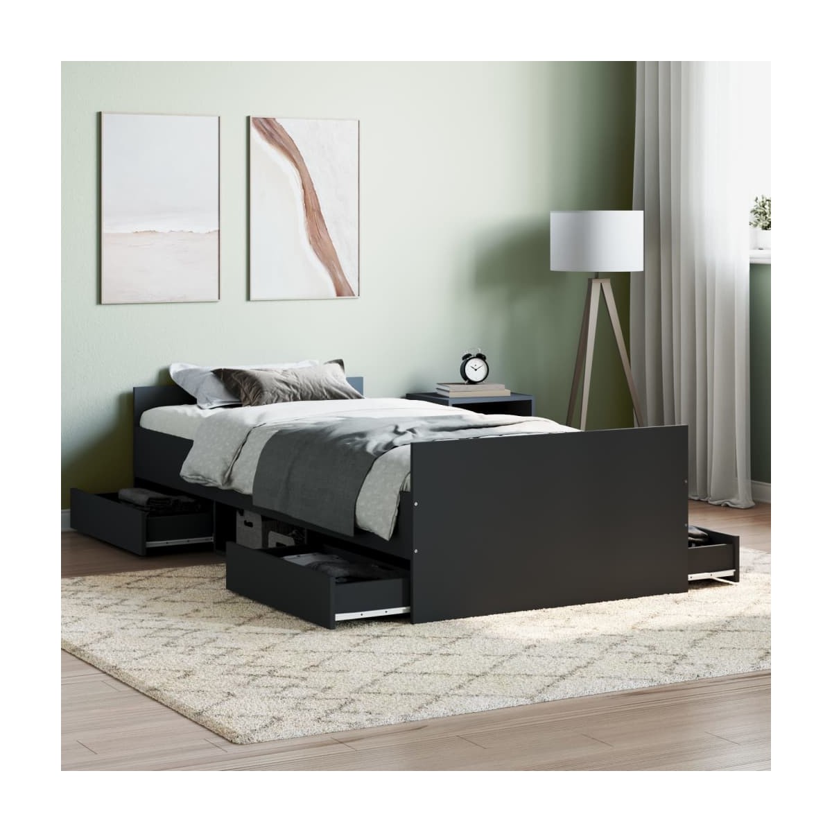 Consigue un sueño más reparador con esta estructura de cama. Es un aporte acogedor para cualquier dormitorio. Material duradero: La madera de ingeniería tiene una calidad excepcional, con una superficie lisa y también cuenta con fuerza, estabilidad y resistencia a la humedad.Cabecero y estribo de cama funcionales: El cabecero y el estribo de cama mantienen el colchón en su lugar. Además, la cabecera te brinda un excelente soporte para la espalda mientras estás sentado leyendo o mirando la televisión.Amplio espacio de almacenamiento: Esta cama de invitados tiene 4 cajones y estantes que brindan un amplio espacio para guardar ropa, calcetines, juguetes, cojines, etc.Listones robustos: Los listones de madera contrachapada proporcionan una buena distribución del peso, lo que garantiza que el colchón se mantenga en tu sitio con cada giro y vuelta del cuerpo mientras duermes. Información útil:El colchón no está incluido con la cama. Disponemos de una variada selección de colchones. Puedes echar un vistazo a nuestra tienda para buscar el colchón correspondiente.