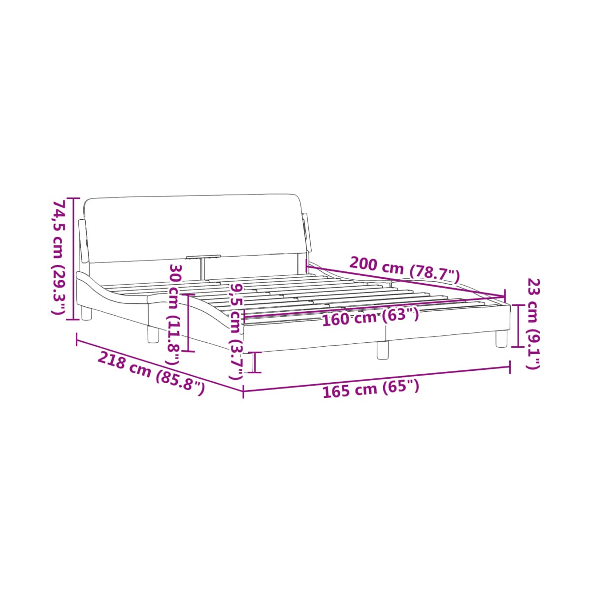 - Tamaño de colchón compatible: 160 x 200 cm (ancho x largo) (colchón no incluido)