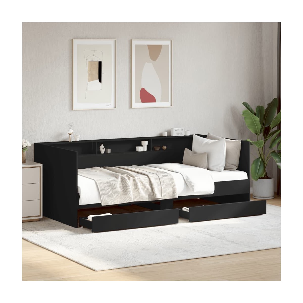 Este sofá cama 2 en 1 con cajones, que sirve como sofá y cama, es un complemento práctico y llamativo para tu salón o dormitorio. Sofá cama versátil: El sofá cama funciona como sofá durante el día y se convierte fácilmente en cama por la noche, lo que proporciona una solución práctica para recibir invitados y maximizar el espacio. Amplio espacio de almacenaje: Esta cama de invitados tiene 2 cajones con ruedas que brindan un amplio espacio para guardar ropa, calcetines, juguetes, cojines, etc.Sólida construcción: Este sofá cama tiene una estructura robusta de madera de ingeniería. La madera de ingeniería es de una calidad excepcional con una superficie lisa y cuenta con la fuerza, la estabilidad y la resistencia a la humedad. Información útil:Ten en cuenta que la entrega incluye únicamente una estructura de cama. El colchón no está incluido. Puedes echar un vistazo a nuestra tienda para buscar el correspondiente colchón.