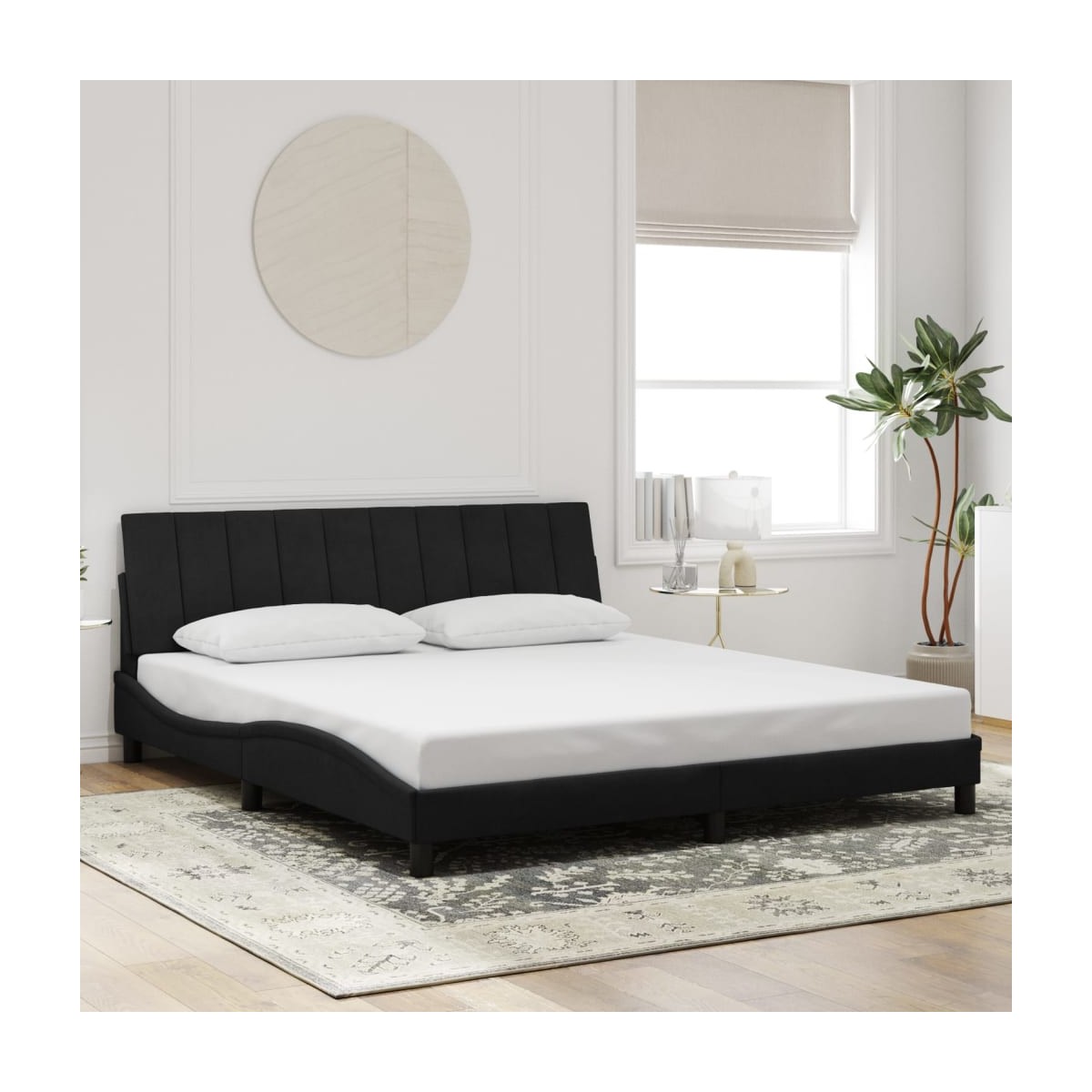 ¡Consigue un sueño más reparador con esta estructura de cama con cabecero! Es un aporte acogedor para cualquier dormitorio. Terciopelo suave: El terciopelo es una tela suave y cálida, agradable al tacto.Listones robustos: Los listones de madera contrachapada proporcionan una buena distribución del peso, lo que garantiza que el colchón se mantenga en tu sitio con cada giro y vuelta del cuerpo mientras duermes.Excelente soporte: El cabecero acolchado está relleno de espuma para una comodidad ultrasuave y óptima, lo que te brinda un excelente soporte para la espalda mientras estás sentado en la cama para leer o ver la televisión.Diseño práctico: El cabecero acolchado tiene una cremallera para una fácil instalación, y los cierres de gancho y bucle en la parte posterior se pueden usar para colocar las luces LED.Diseño lateral ondulado: El look ondulado de la estructura de la cama es elegante y sofisticado, agregando un toque moderno y elegante a tu decoración, convirtiéndolo en el foco de atención de tu dormitorio. Información útil:El colchón no está incluido con la cama. Disponemos de una variada selección de colchones. Puedes echar un vistazo a nuestra tienda para buscar el colchón correspondiente.