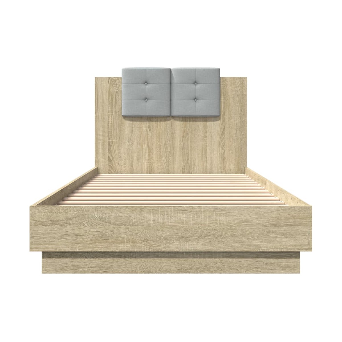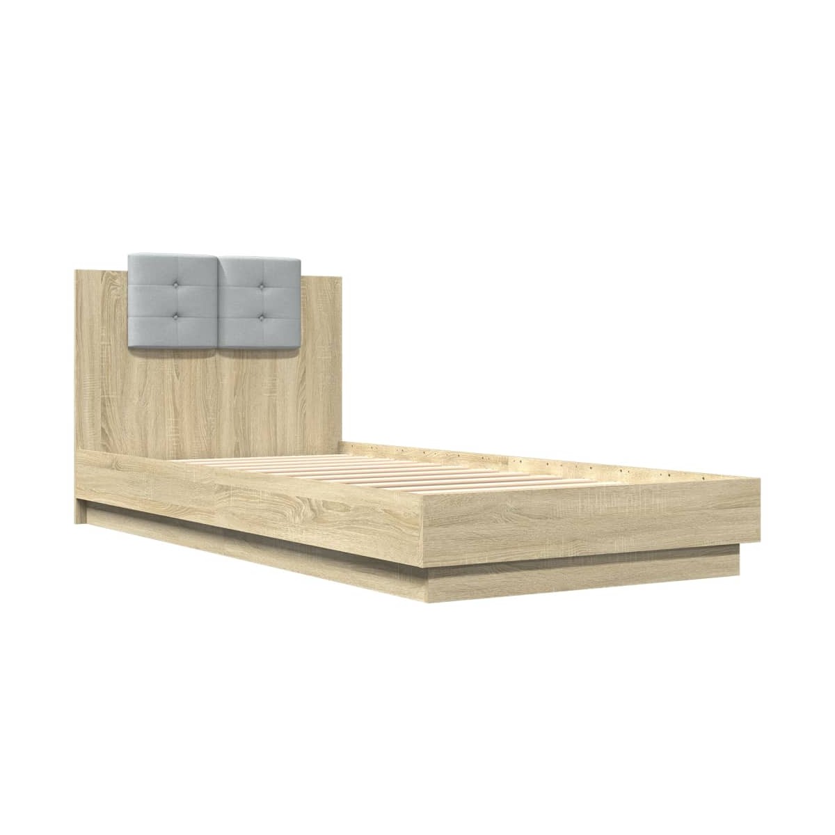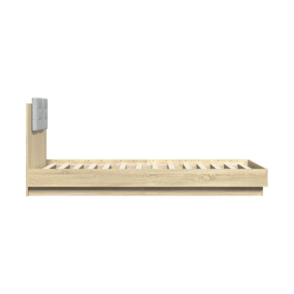 ¡Consigue un sueño más reparador con esta estructura de cama con cabecero! Es un aporte acogedor para cualquier dormitorio. Material duradero: La madera de ingeniería tiene una calidad excepcional, con una superficie lisa y también cuenta con fuerza, estabilidad y resistencia a la humedad.Listones robustos: Los listones de madera contrachapada proporcionan una buena distribución del peso, lo que garantiza que el colchón se mantenga en tu sitio con cada giro y vuelta del cuerpo mientras duermes.Excelente soporte: El cabecero acolchado está relleno de espuma para una comodidad ultrasuave y óptima, lo que te brinda un excelente soporte para la espalda mientras estás sentado en la cama para leer o ver la televisión. Información útil:El colchón no está incluido con la cama. Disponemos de una variada selección de colchones. Puedes echar un vistazo a nuestra tienda para buscar el colchón correspondiente.