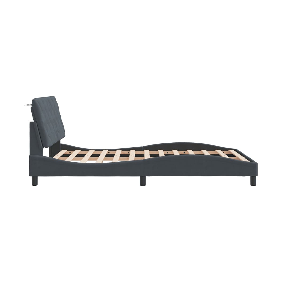¡Consigue un sueño más reparador con esta estructura de cama con cabecero! Es un aporte acogedor para cualquier dormitorio. Terciopelo suave: El terciopelo es una tela suave y cálida, agradable al tacto.Listones robustos: Los listones de madera contrachapada proporcionan una buena distribución del peso, lo que garantiza que el colchón se mantenga en tu sitio con cada giro y vuelta del cuerpo mientras duermes.Excelente soporte: El cabecero acolchado está relleno de espuma para una comodidad ultrasuave y óptima, lo que te brinda un excelente soporte para la espalda mientras estás sentado en la cama para leer o ver la televisión.Diseño práctico: El cabecero acolchado tiene una cremallera para una fácil instalación, y los cierres de gancho y bucle en la parte posterior se pueden usar para colocar las luces LED.Diseño lateral ondulado: El look ondulado de la estructura de la cama es elegante y sofisticado, agregando un toque moderno y elegante a tu decoración, convirtiéndolo en el foco de atención de tu dormitorio. Información útil:El colchón no está incluido con la cama. Disponemos de una variada selección de colchones. Puedes echar un vistazo a nuestra tienda para buscar el colchón correspondiente.