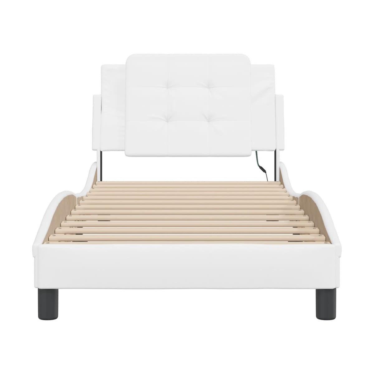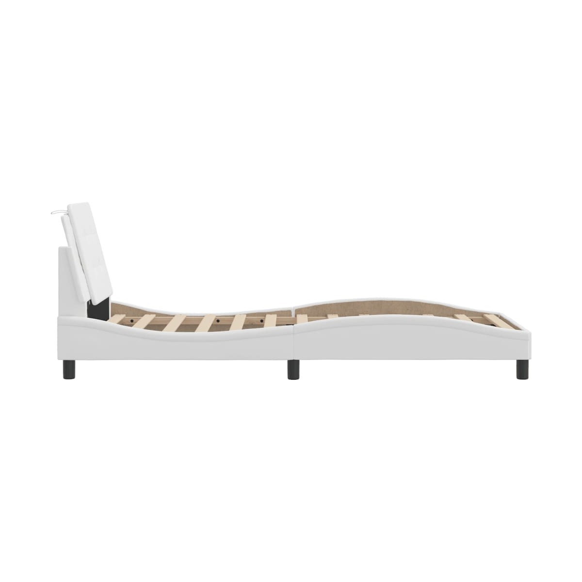¡Consigue tener un sueño reparador con esta estructura de cama con luces LED! Es un aporte acogedor para cualquier dormitorio. Material duradero: El cuero sintético de primera calidad es un material muy duradero. Es resistente a las manchas, por lo que es fácil de limpiar con un paño húmedo. Además, la superficie lisa da un aspecto lujoso y la belleza del cuero auténtico.Listones robustos: Los listones de madera contrachapada proporcionan una buena distribución del peso, lo que garantiza que el colchón se mantenga en tu sitio con cada giro y vuelta del cuerpo mientras duermes.Excelente apoyo: El cabecero de la cama te proporciona un excelente apoyo para la espalda mientras estás sentado en la cama para leer o ver la televisión.Tira de LED de colores: Alegra la oscuridad con luces LED de colores. Los cierres de gancho y bucle de la parte posterior del cojín del cabecero se pueden utilizar para fijar las luces LED.Diseño lateral ondulado: El look ondulado de la estructura de la cama es elegante y sofisticado, agregando un toque moderno y elegante a tu decoración, convirtiéndolo en el foco de atención de tu dormitorio. Información útil:El colchón no está incluido con la cama. Disponemos de una variada selección de colchones. Puedes echar un vistazo a nuestra tienda para buscar el colchón correspondiente.El producto tiene un conector USB que necesita una fuente de alimentación USB certificada de 5 V (no incluida).