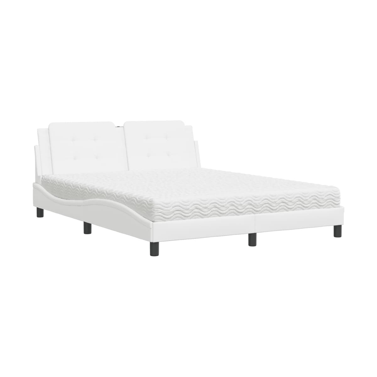 ¡Consigue tener un sueño más reparador en esta cama con colchón! Es un aporte acogedor para cualquier dormitorio. Material duradero: El cuero sintético de primera calidad es un material muy duradero. Es resistente a las manchas, por lo que es fácil de limpiar con un paño húmedo. Además, la superficie lisa da un aspecto lujoso y la belleza del cuero auténtico. Listones robustos: Los listones de madera contrachapada proporcionan una buena distribución del peso, lo que garantiza que el colchón se mantenga en tu sitio con cada giro y vuelta del cuerpo mientras duermes. Excelente soporte: El cabecero acolchado está relleno de espuma para una comodidad ultrasuave y óptima, lo que te brinda un excelente soporte para la espalda mientras estás sentado en la cama para leer o ver la televisión. Colchón de espuma: Este colchón de cama de tela de 3 capas está relleno de espuma de PU 22D para ofrecer un confort óptimo. Alivia el cansancio y favorece la circulación sanguínea, con el fin de ofrecerte una relajación completa y una buena calidad de sueño. Además, el colchón está disponible en dureza H2 y H3, por lo que solo tienes que girarlo para elegir la dureza que más te convenga. Diseño lateral ondulado: El look ondulado de la estructura de la cama es elegante y sofisticado, agregando un toque moderno y elegante a tu decoración, convirtiéndolo en el foco de atención de tu dormitorio.