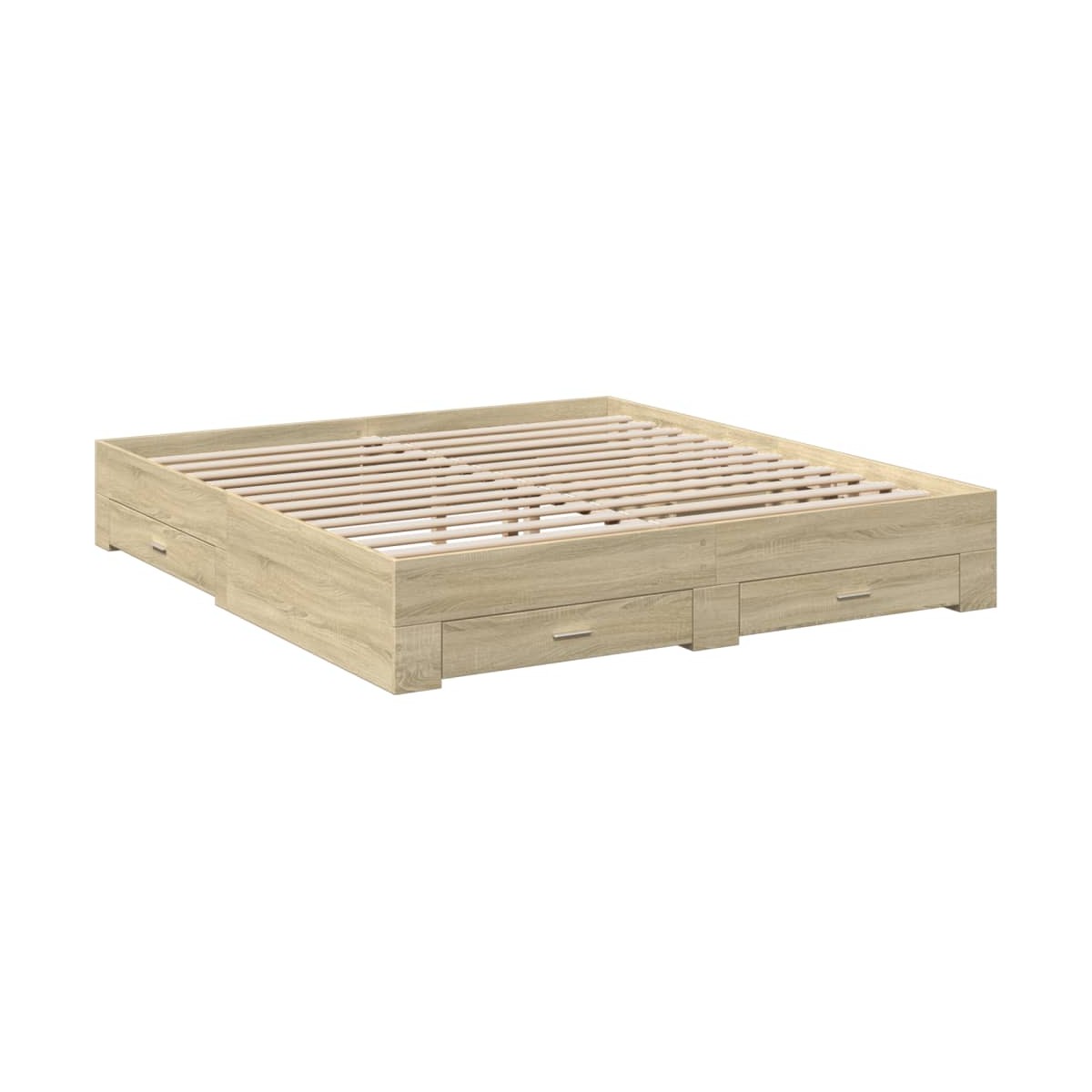 ¡Añade un toque moderno a tu dormitorio con esta estructura de cama con cajones! Es un aporte práctico y decorativo para tu hogar. Material duradero: La estructura de la cama está hecha de madera de ingeniería. La madera de ingeniería tiene una calidad excepcional, con una superficie lisa y también con fuerza, estabilidad y resistencia a la humedad.Listones robustos: Los listones de madera contrachapada proporcionan una buena distribución del peso, lo que garantiza que el colchón se mantenga en tu sitio con cada giro y vuelta del cuerpo mientras duermes.Función de almacenaje: Los cajones de cama incluidos proporcionan amplio espacio de almacenamiento para guardar cosas básicas, y mantienen la habitación limpia y ordenada. Información útil:El colchón no está incluido con la cama. Disponemos de una variada selección de colchones. Puedes echar un vistazo a nuestra tienda para buscar el colchón correspondiente.