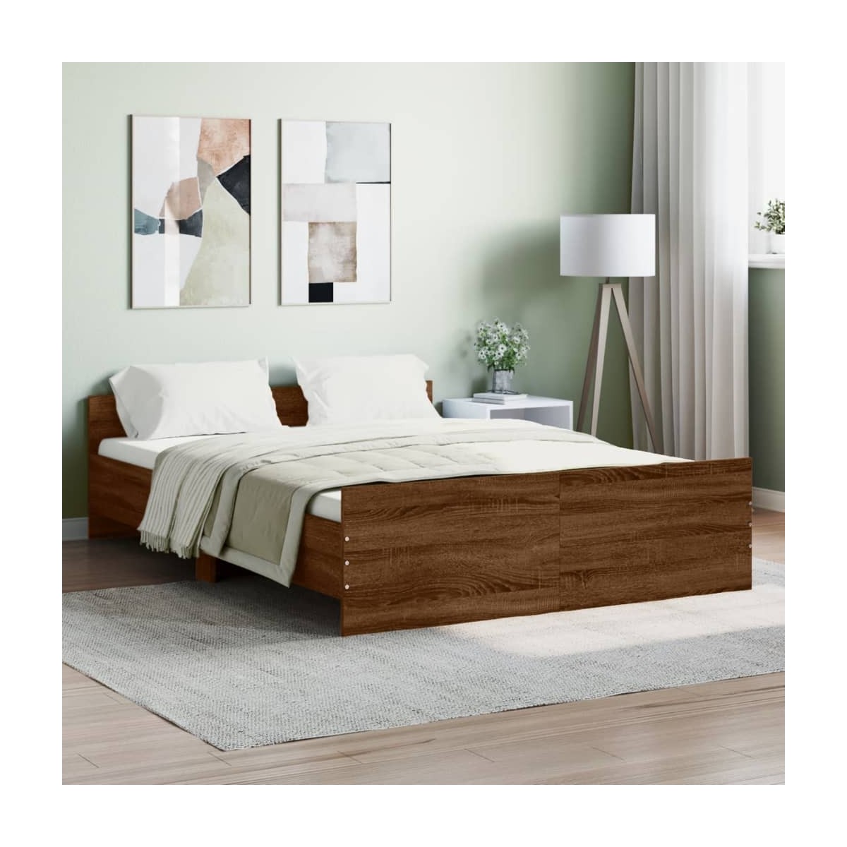 Consigue un sueño más reparador con esta estructura de cama. Es un aporte acogedor para cualquier dormitorio. Material duradero: La madera de ingeniería tiene una calidad excepcional, con una superficie lisa y también cuenta con fuerza, estabilidad y resistencia a la humedad.Cabecero y estribo de cama funcionales: El cabecero y el estribo de cama mantienen el colchón en su lugar. Además, la cabecera te brinda un excelente soporte para la espalda mientras estás sentado leyendo o mirando la televisión.Listones robustos: Los listones de madera contrachapada proporcionan una buena distribución del peso, lo que garantiza que el colchón se mantenga en tu sitio con cada giro y vuelta del cuerpo mientras duermes. Información útil:El colchón no está incluido con la cama. Disponemos de una variada selección de colchones. Puedes echar un vistazo a nuestra tienda para buscar el colchón correspondiente.