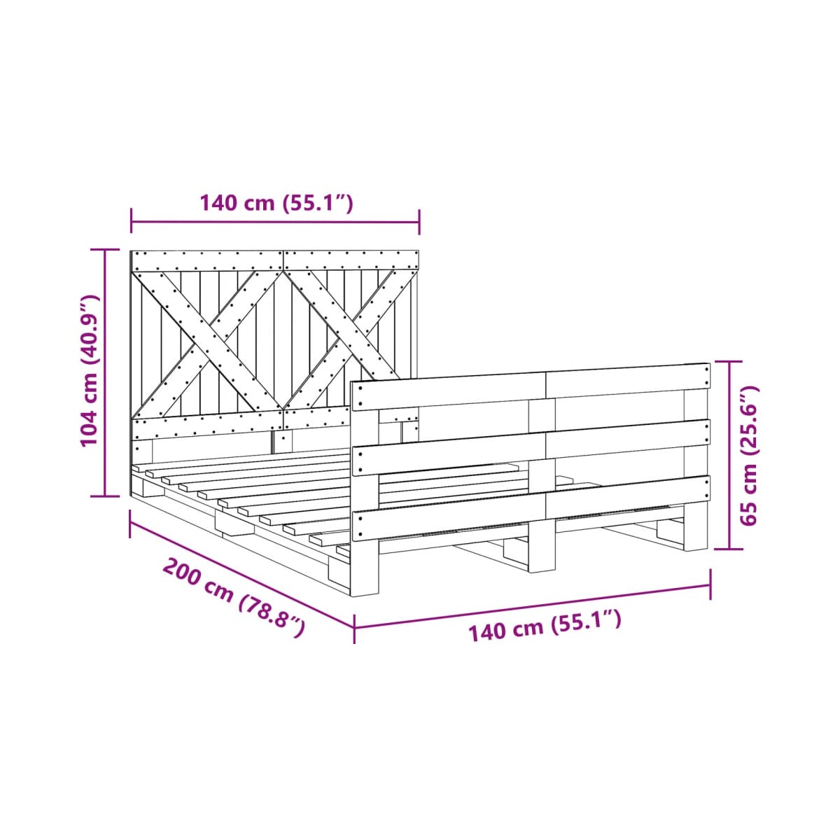 - Dimensiones: 200 x 140 x 104 cm (largo x ancho x alto)
