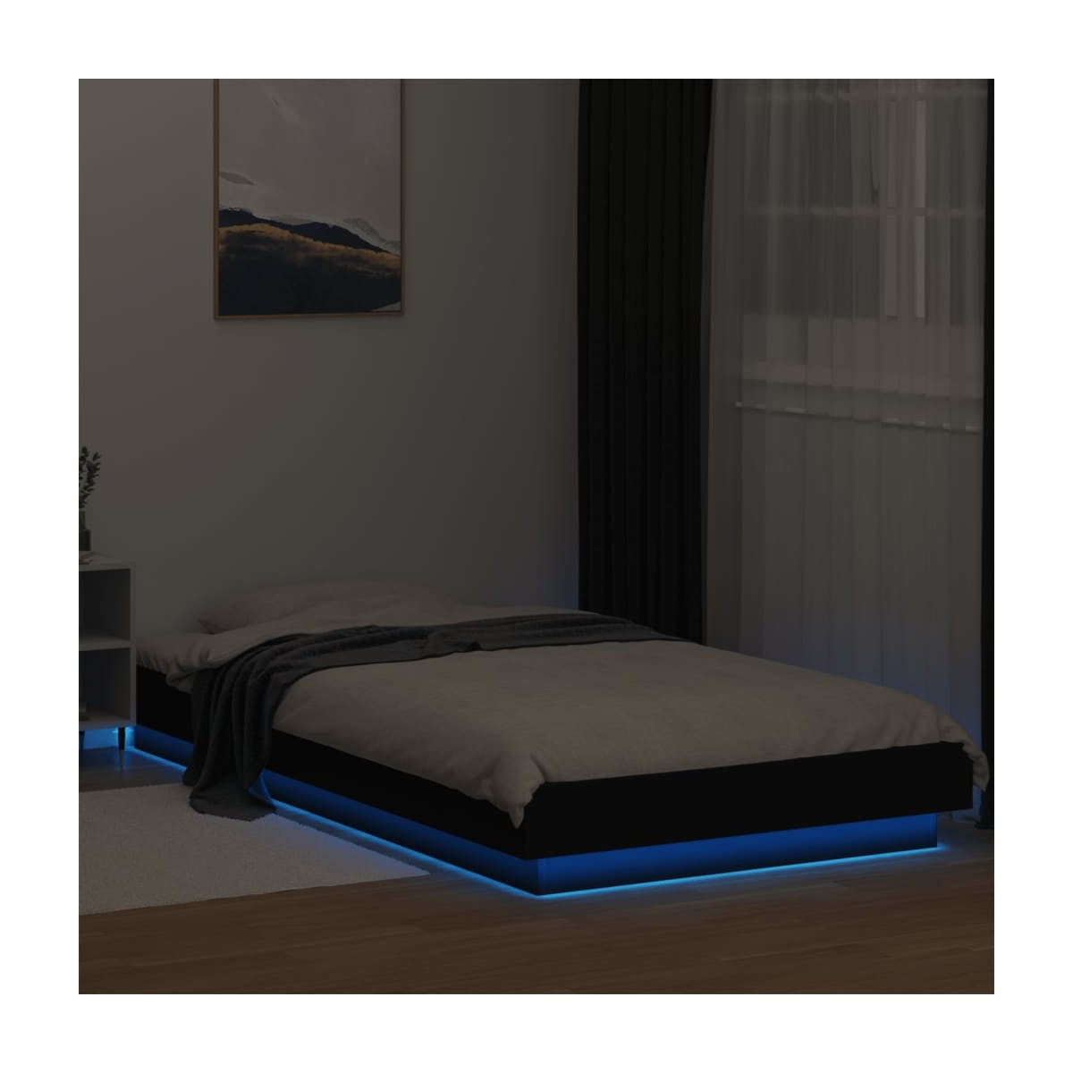 ¡Consigue tener un sueño reparador con esta estructura de cama con luces LED! Es un aporte acogedor para cualquier dormitorio. Material duradero: La madera de ingeniería tiene una calidad excepcional, con una superficie lisa y también cuenta con fuerza, estabilidad y resistencia a la humedad. Luces LED RGB: La estructura de cama está equipada con luces LED RGB. Con varios menús personalizables, puedes cambiar fácilmente el color de las luces e incluso configurarlas para que se ajusten automáticamente. Estas luces LED no sólo realzan el aspecto moderno de la base de la cama, sino que también aumentan su atractivo. Listones robustos: Los listones de madera contrachapada proporcionan una buena distribución del peso, lo que garantiza que el colchón se mantenga en tu sitio con cada giro y vuelta del cuerpo mientras duermes. Información útil:El colchón no está incluido con la cama. Disponemos de una variada selección de colchones. Puedes echar un vistazo a nuestra tienda para buscar el colchón correspondiente. El producto tiene un conector USB que necesita una fuente de alimentación USB certificada de 5 V (no incluida).
