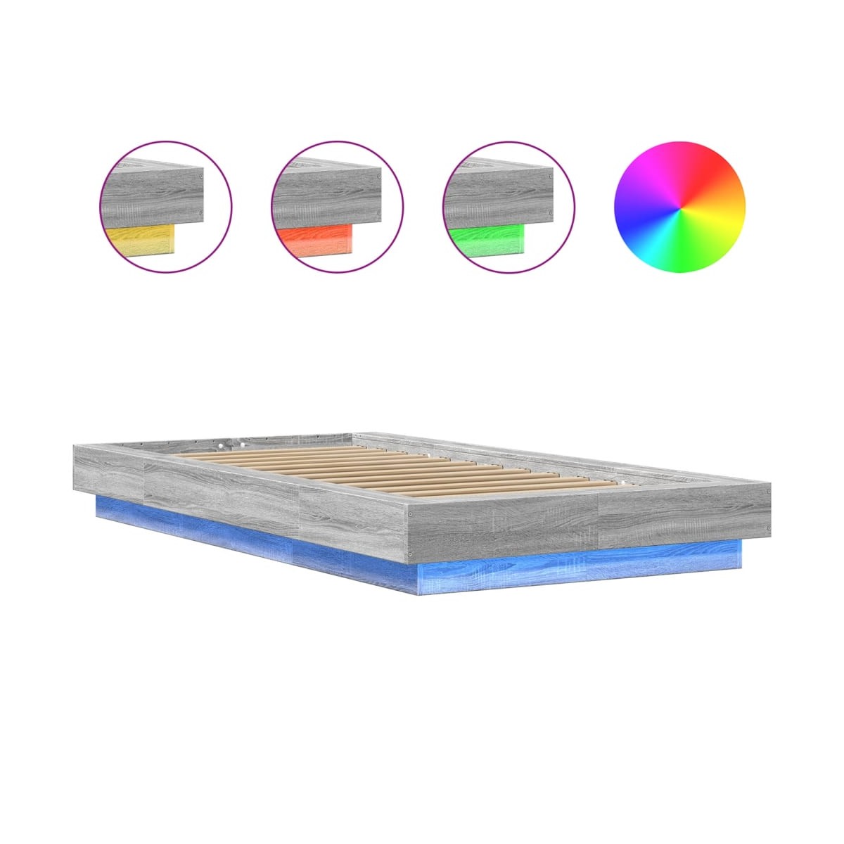 ¡Consigue tener un sueño reparador con esta estructura de cama con luces LED! Es un aporte acogedor para cualquier dormitorio. Material duradero: La madera de ingeniería tiene una calidad excepcional, con una superficie lisa y también cuenta con fuerza, estabilidad y resistencia a la humedad. Luces LED RGB: La estructura de cama está equipada con luces LED RGB. Con varios menús personalizables, puedes cambiar fácilmente el color de las luces e incluso configurarlas para que se ajusten automáticamente. Estas luces LED no sólo realzan el aspecto moderno de la base de la cama, sino que también aumentan su atractivo. Listones robustos: Los listones de madera contrachapada proporcionan una buena distribución del peso, lo que garantiza que el colchón se mantenga en tu sitio con cada giro y vuelta del cuerpo mientras duermes. Información útil:El colchón no está incluido con la cama. Disponemos de una variada selección de colchones. Puedes echar un vistazo a nuestra tienda para buscar el colchón correspondiente. El producto tiene un conector USB que necesita una fuente de alimentación USB certificada de 5 V (no incluida).