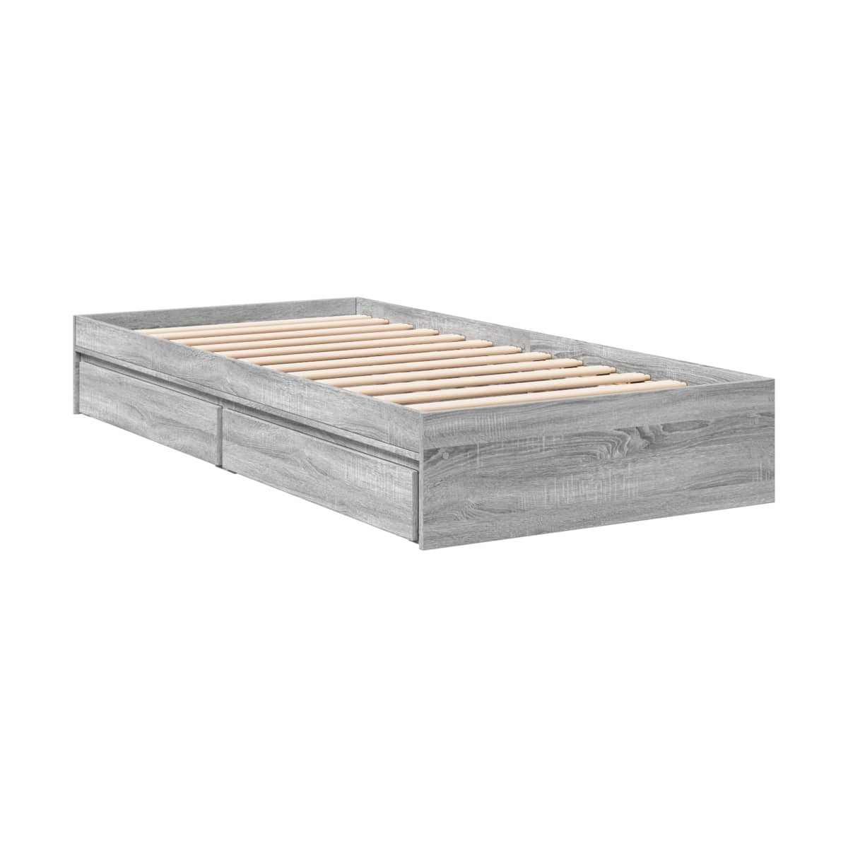 ¡Añade un toque moderno a tu dormitorio con esta estructura de cama con cajones! Es un aporte práctico y decorativo para tu hogar. Material duradero: La estructura de la cama está hecha de madera de ingeniería. La madera de ingeniería tiene una calidad excepcional, con una superficie lisa y también con fuerza, estabilidad y resistencia a la humedad.Listones robustos: Los listones de madera contrachapada proporcionan una buena distribución del peso, lo que garantiza que el colchón se mantenga en tu sitio con cada giro y vuelta del cuerpo mientras duermes.Función de almacenaje: Los cajones de cama incluidos proporcionan amplio espacio de almacenamiento para guardar cosas básicas, y mantienen la habitación limpia y ordenada. Información útil:El colchón no está incluido con la cama. Disponemos de una variada selección de colchones. Puedes echar un vistazo a nuestra tienda para buscar el colchón correspondiente.