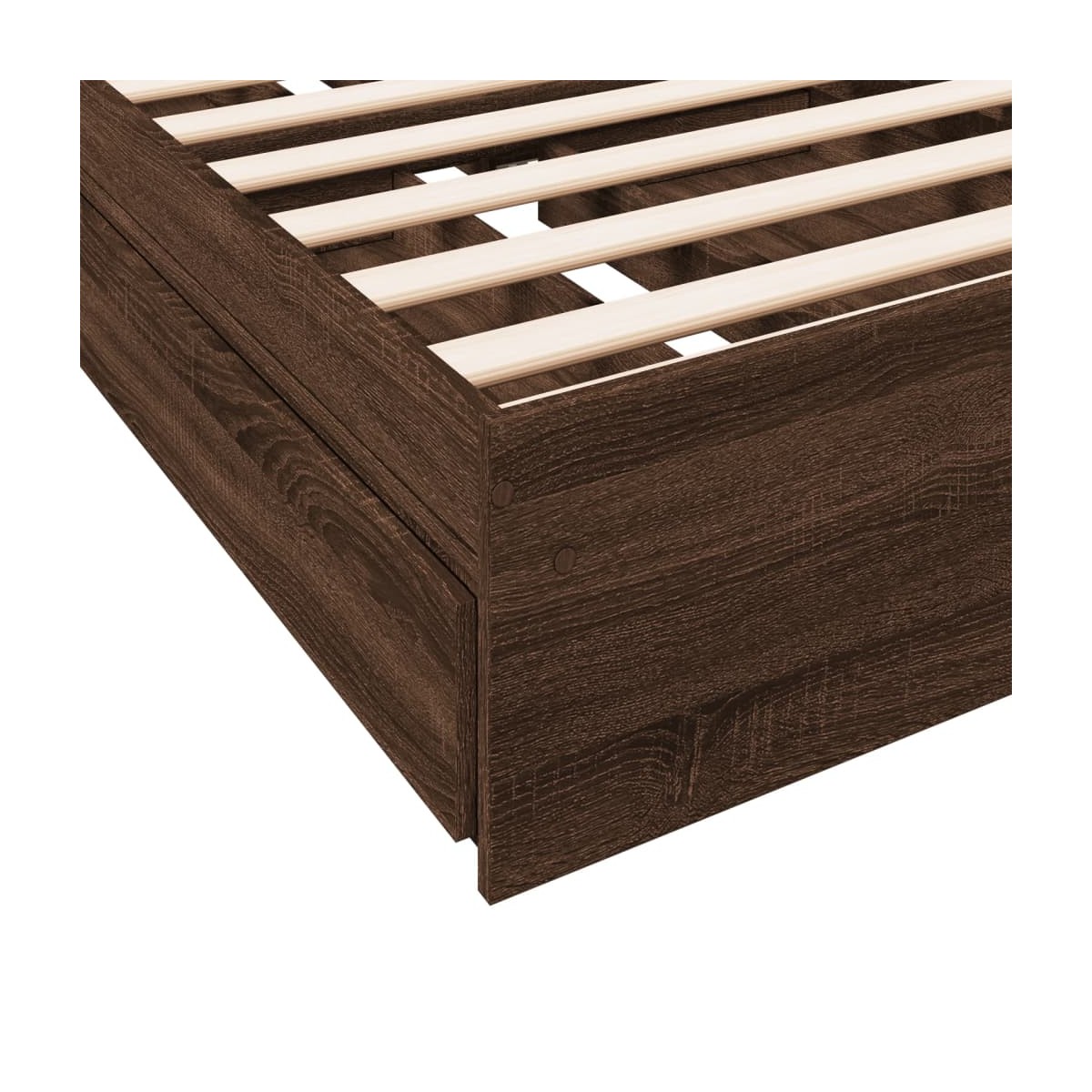 ¡Añade un toque moderno a tu dormitorio con esta estructura de cama con cajones! Es un aporte práctico y decorativo para tu hogar. Material duradero: La estructura de la cama está hecha de madera de ingeniería. La madera de ingeniería tiene una calidad excepcional, con una superficie lisa y también con fuerza, estabilidad y resistencia a la humedad.Listones robustos: Los listones de madera contrachapada proporcionan una buena distribución del peso, lo que garantiza que el colchón se mantenga en tu sitio con cada giro y vuelta del cuerpo mientras duermes.Función de almacenaje: Los cajones de cama incluidos proporcionan amplio espacio de almacenamiento para guardar cosas básicas, y mantienen la habitación limpia y ordenada. Información útil:El colchón no está incluido con la cama. Disponemos de una variada selección de colchones. Puedes echar un vistazo a nuestra tienda para buscar el colchón correspondiente.