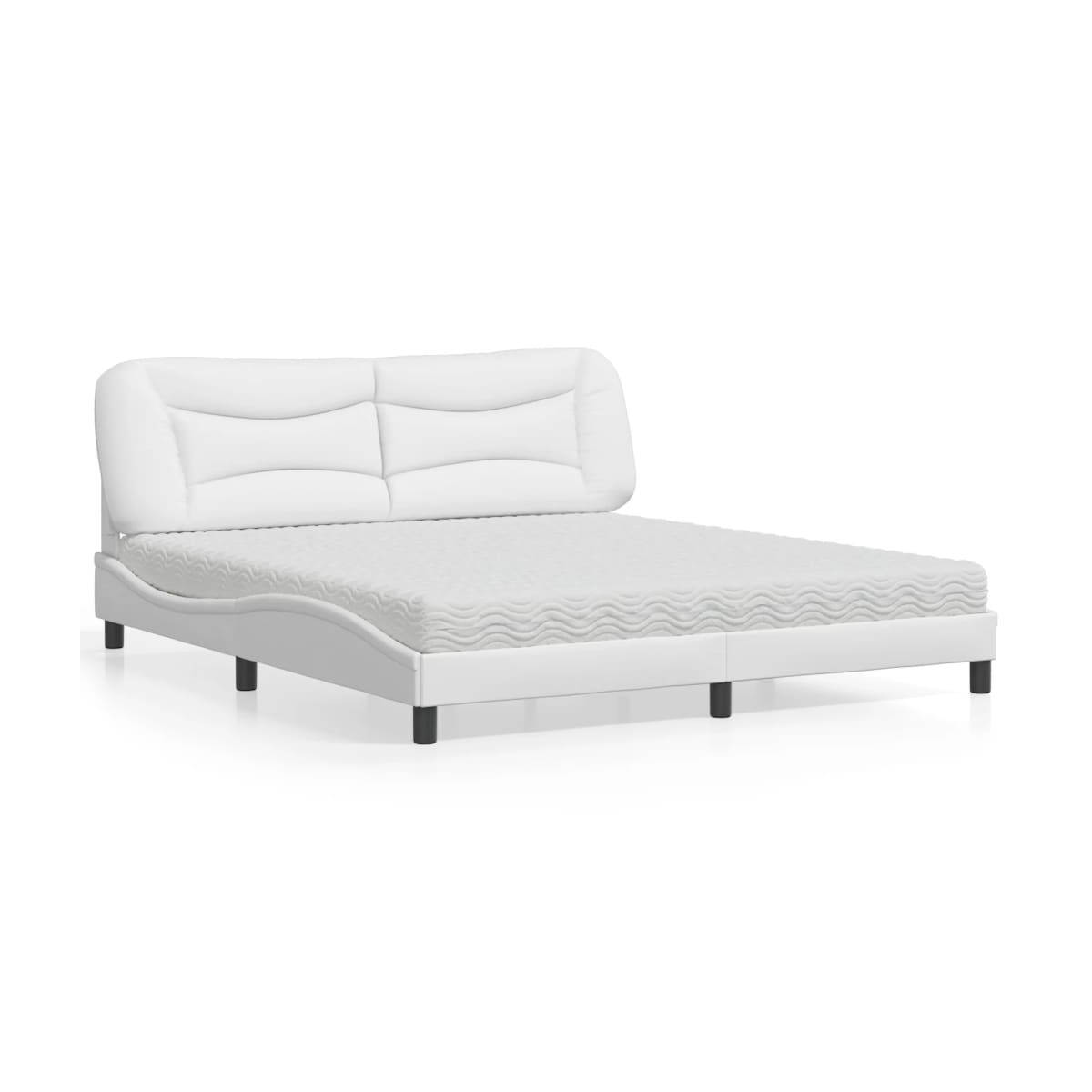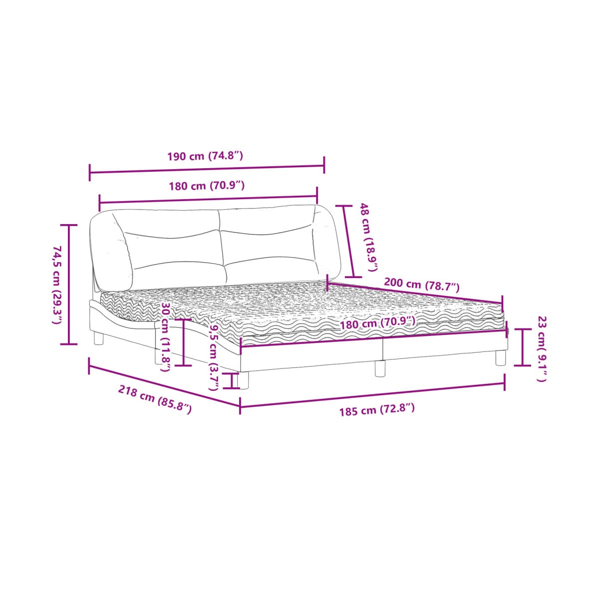 ¡Consigue tener un sueño más reparador en esta cama con colchón! Es un aporte acogedor para cualquier dormitorio. Material duradero: El cuero sintético de primera calidad es un material muy duradero. Es resistente a las manchas, por lo que es fácil de limpiar con un paño húmedo. Además, la superficie lisa da un aspecto lujoso y la belleza del cuero auténtico.Listones robustos: Los listones de madera contrachapada proporcionan una buena distribución del peso, lo que garantiza que el colchón se mantenga en tu sitio con cada giro y vuelta del cuerpo mientras duermes.Excelente apoyo: El cabecero de la cama te proporciona un excelente apoyo para la espalda mientras estás sentado en la cama para leer o ver la televisión.Colchón de espuma: Este colchón de cama de tela de 3 capas está relleno de espuma de PU 22D para ofrecer un confort óptimo. Alivia el cansancio y favorece la circulación sanguínea, con el fin de ofrecerte una relajación completa y una buena calidad de sueño. Además, el colchón está disponible en dureza H2 y H3, por lo que solo tienes que girarlo para elegir la dureza que más te convenga.Diseño lateral ondulado: El look ondulado de la estructura de la cama es elegante y sofisticado, agregando un toque moderno y elegante a tu decoración, convirtiéndolo en el foco de atención de tu dormitorio.