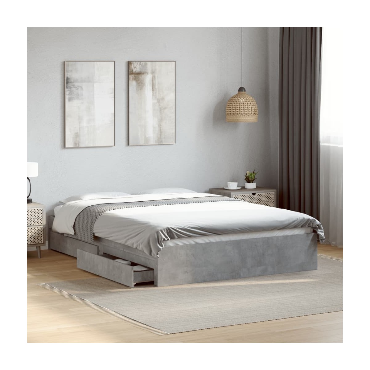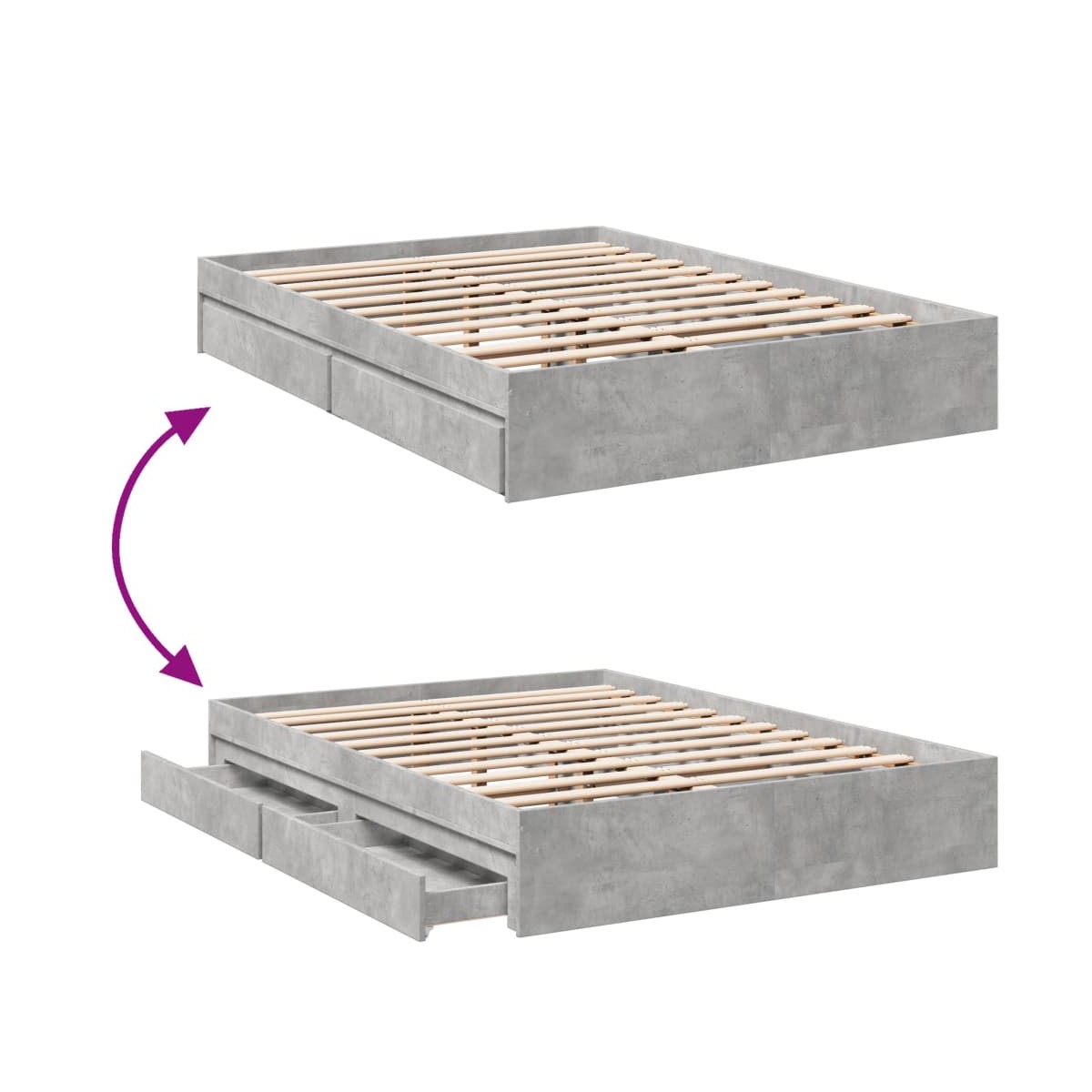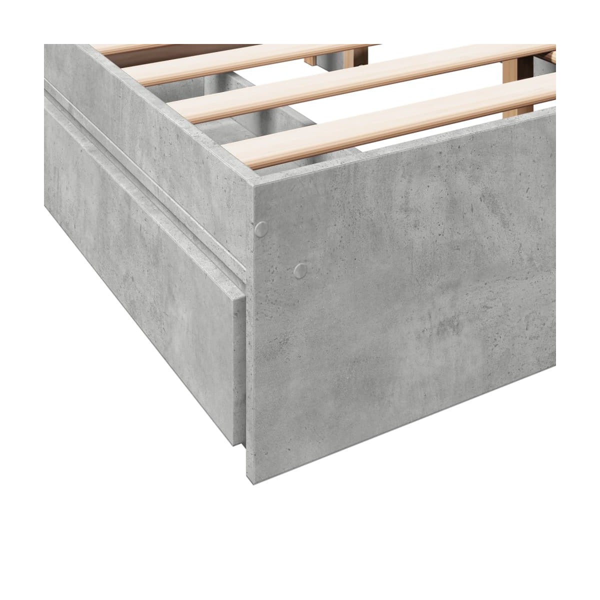 ¡Añade un toque moderno a tu dormitorio con esta estructura de cama con cajones! Es un aporte práctico y decorativo para tu hogar. Material duradero: La estructura de la cama está hecha de madera de ingeniería. La madera de ingeniería tiene una calidad excepcional, con una superficie lisa y también con fuerza, estabilidad y resistencia a la humedad.Listones robustos: Los listones de madera contrachapada proporcionan una buena distribución del peso, lo que garantiza que el colchón se mantenga en tu sitio con cada giro y vuelta del cuerpo mientras duermes.Función de almacenaje: Los cajones de cama incluidos proporcionan amplio espacio de almacenamiento para guardar cosas básicas, y mantienen la habitación limpia y ordenada. Información útil:El colchón no está incluido con la cama. Disponemos de una variada selección de colchones. Puedes echar un vistazo a nuestra tienda para buscar el colchón correspondiente.