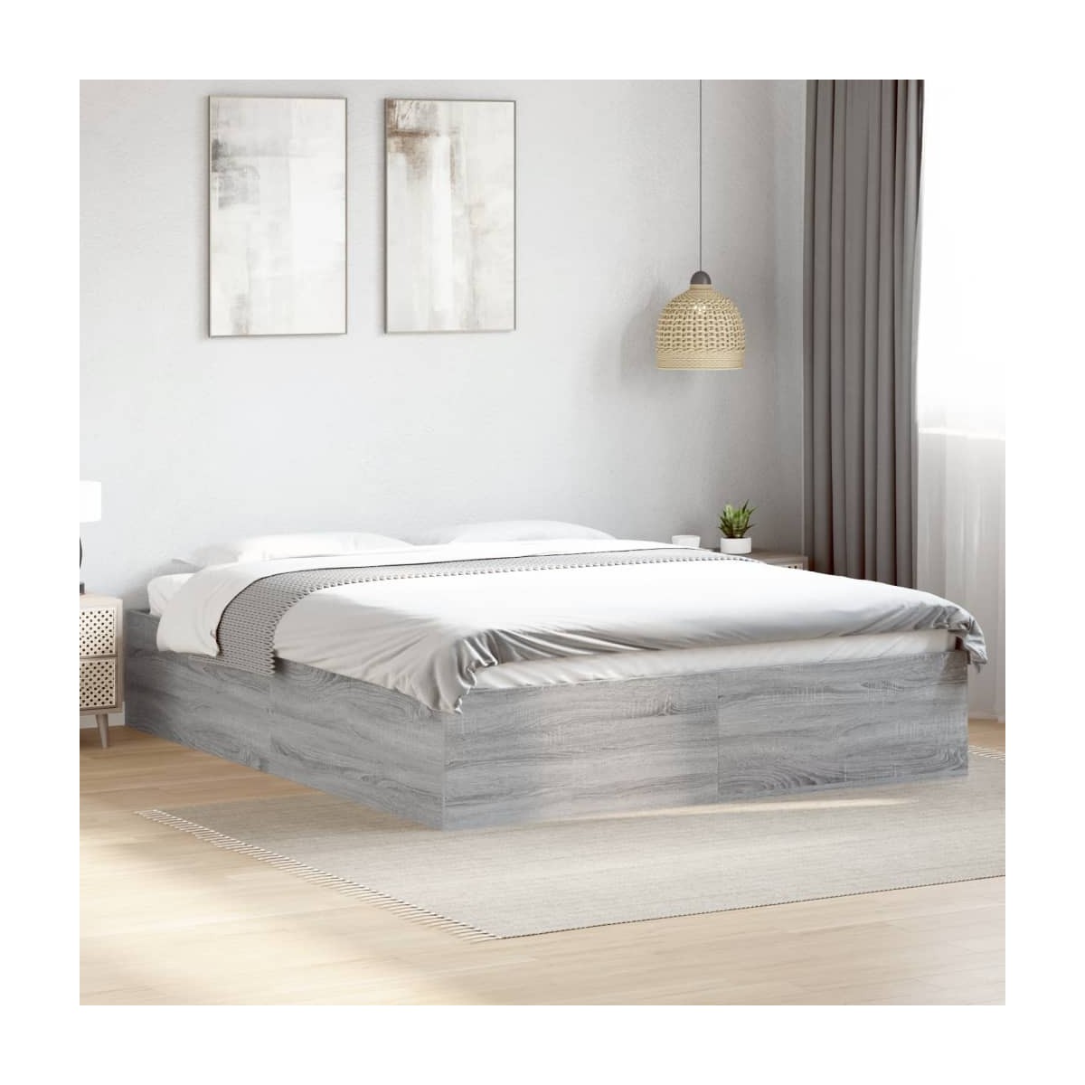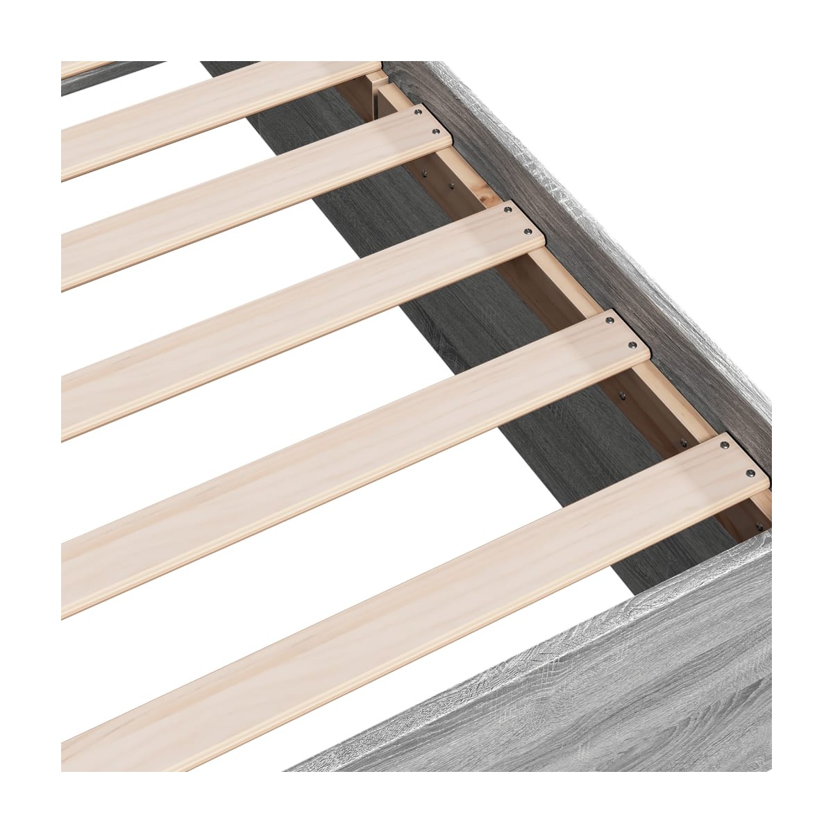 Consigue un sueño más reparador con esta estructura de cama. Es un aporte acogedor para cualquier dormitorio. Material duradero: La madera de ingeniería tiene una calidad excepcional, con una superficie lisa y también cuenta con fuerza, estabilidad y resistencia a la humedad.Listones para un soporte óptimo: El somier se completa con listones para ofrecer un soporte esencial y transpirabilidad a tu colchón.Diseño moderno: ¡Da un estilo moderno a tu casa! El moderno diseño posee líneas limpias, aspectos minimalistas y luz natural como parte del estilo de interiorismo. Información útil:El colchón no está incluido con la cama. Disponemos de una variada selección de colchones. Puedes echar un vistazo a nuestra tienda para buscar el colchón correspondiente.
