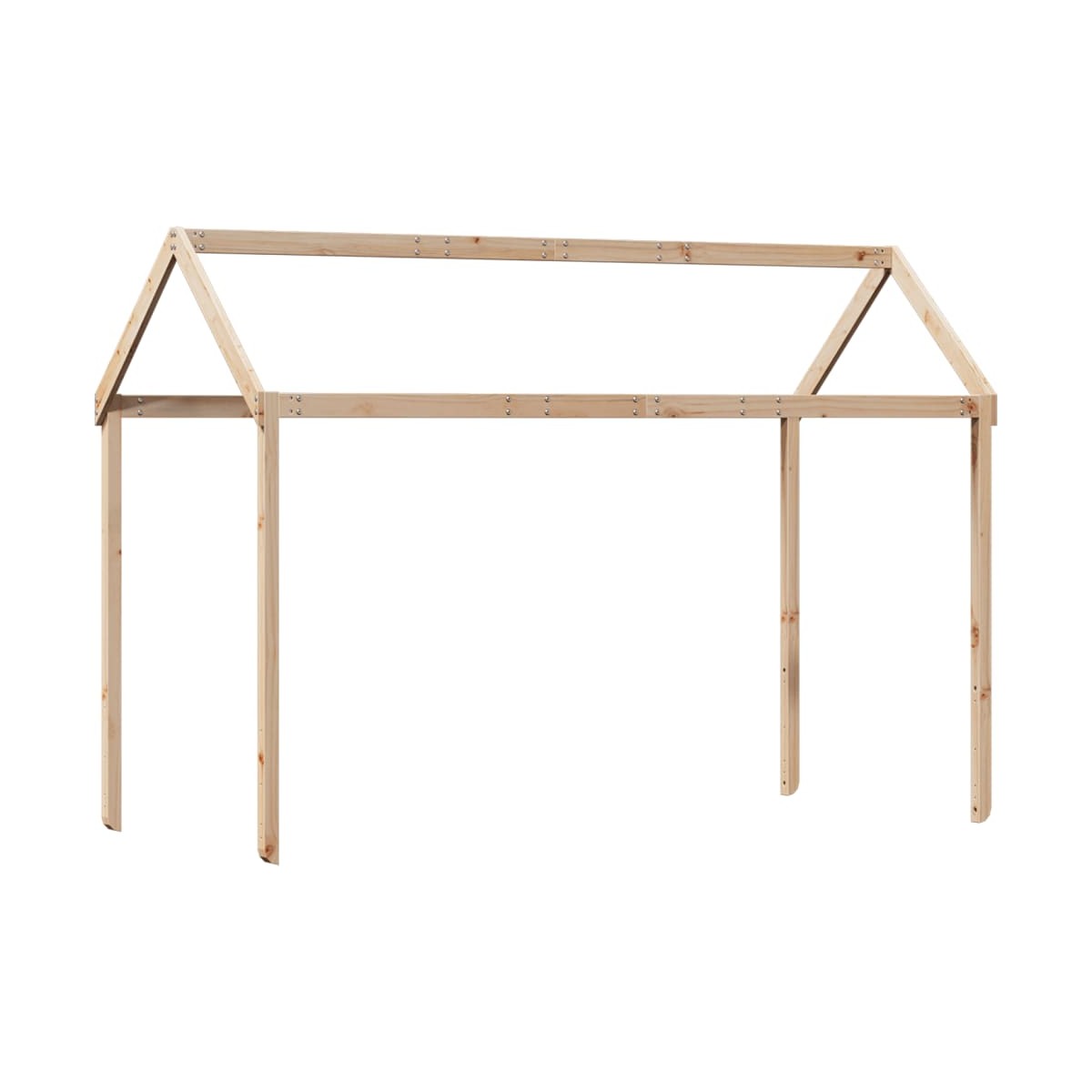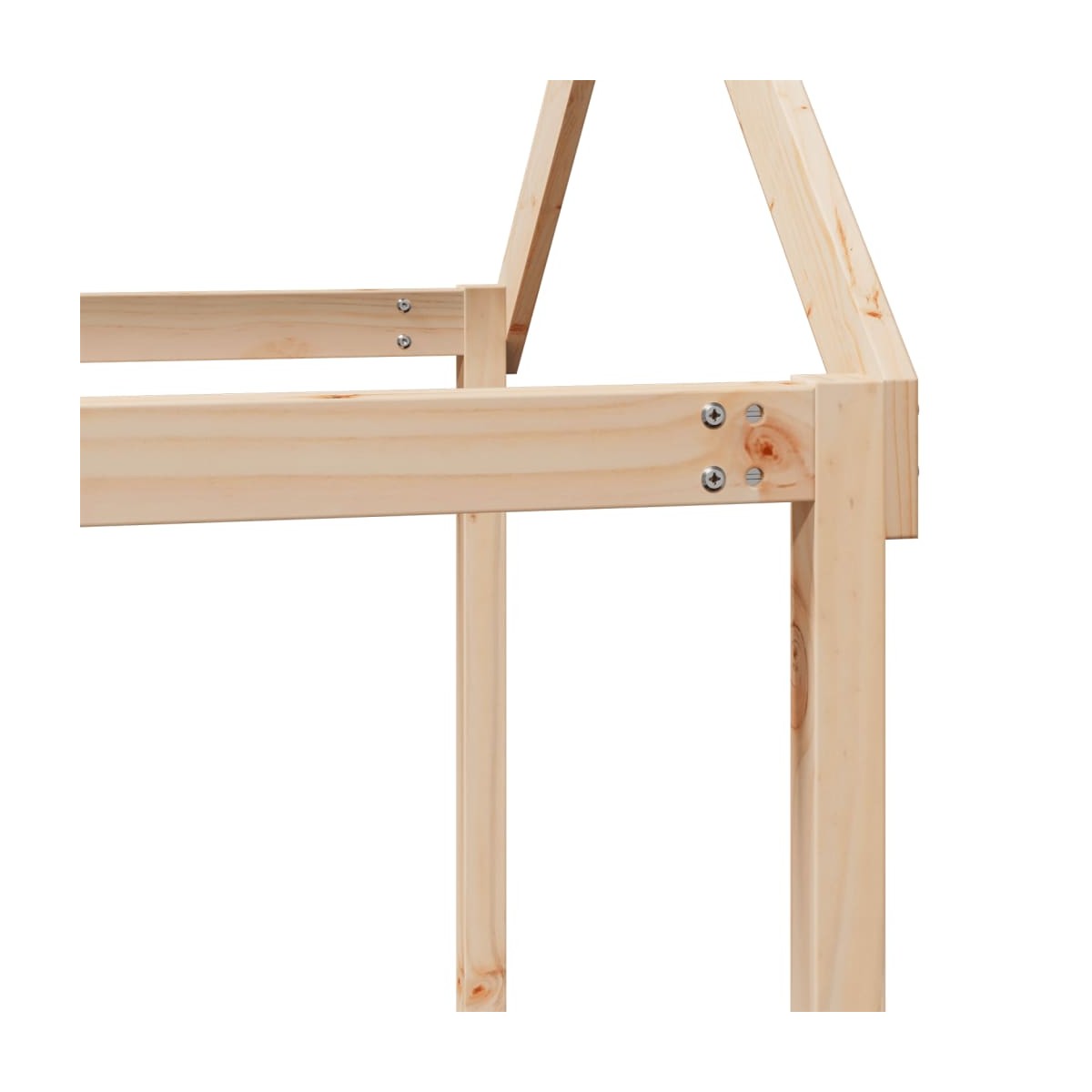 Esta litera infantil con techo es elegante y funcional, por lo que es un aporte perfecto para cualquier habitación con espacio limitado. Madera de pino maciza: La madera de pino maciza es un bonito material natural. La madera de pino tiene vetas rectas, y los nudos dan al material su distintivo aspecto rústico.Diseño seguro: La cama alta está diseñada pensando en la seguridad. Cuenta con barandillas para evitar que el usuario salga rodando mientras duerme.Listones robustos: Los listones de madera contrachapada proporcionan una buena distribución del peso, lo que garantiza que el colchón se mantenga en tu sitio con cada giro y vuelta del cuerpo mientras duermes.Gran diversión: Al combinar el techo con la cama de tu hijo, puedes crear un escondite que le ofrezca a tu hijo mucha diversión a la hora de acostarse. Este innovador añadido al cuarto no solo será un punto emocionante, sino que también traerá asombro y emoción a la habitación de los niños.Adecuado para espacios limitados: La estructura de cama es una excelente opción para cualquier habitación con espacio limitado, ya que proporciona dos camas individuales con un diseño compacto.Puerta lateral abierta: El techo cuenta con una puerta lateral abierta, lo que facilita el acceso para que tus hijos entren y salgan de la cama. Información útil:El colchón no está incluido con la cama. Disponemos de una variada selección de colchones. Puedes echar un vistazo a nuestra tienda para buscar el colchón correspondiente.