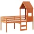 Esta cama alta, con la versatilidad en el corazón de su diseño, es una combinación perfecta de estilo elegante y moderno y practicidad. Es ideal para habitaciones pequeñas. Madera de pino maciza: La madera de pino maciza es un bonito material natural. La madera de pino tiene vetas rectas, y los nudos dan al material su distintivo aspecto rústico.Función práctica: La cama alta ofrece una gran manera de utilizar el espacio del suelo en el dormitorio de tu hijo, puedes combinarla con una cortina de juego genial, un colchón de juego y un panel de cobertizo como rincón de juego o utilizar el área de abajo para el almacenamiento. Los listones de madera contrachapada proporcionan un soporte adicional para la cama. Extiende la vida útil del colchón al absorber la mayor parte del estrés y el peso en la cama.Diseño seguro: La escalera incorporada en la cama alta facilita la subida y bajada de la cama, y las barandillas garantizan la seguridad de los más pequeños mientras duermen.Gran diversión: Al combinar el techo con la cama de tu hijo, puedes crear un escondite que le ofrezca a tu hijo mucha diversión a la hora de acostarse. Este innovador añadido al cuarto no solo será un punto emocionante, sino que también traerá asombro y emoción a la habitación de los niños.Puerta lateral abierta: El techo cuenta con una puerta lateral abierta, lo que facilita el acceso para que tus hijos entren y salgan de la cama. Información útil:El colchón no está incluido con la cama. Disponemos de una variada selección de colchones. Puedes echar un vistazo a nuestra tienda para buscar el colchón correspondiente.