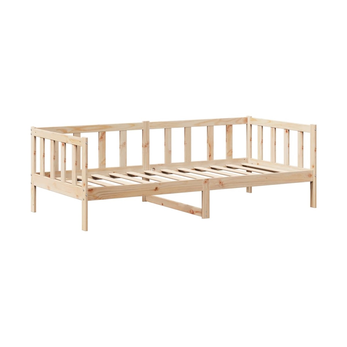 Este versátil sofá cama de madera se puede usar como cama en el dormitorio y también encaja a la perfección como sofá en el salón. Se adapta perfectamente a tus diferentes necesidades, lo que te proporciona mucho espacio para dormir y descansar. Madera de pino maciza: La madera de pino maciza es un bonito material natural. La madera de pino tiene vetas rectas, y los nudos dan al material su distintivo aspecto rústico.Barras de cama de 3 lados: Esta cama tiene un diseño único en el lateral de la cama, que proporciona una sensación de seguridad y además añade un toque de estilo sofisticado a tu hogar.Diseño de listones: El somier de madera proporciona una mejor circulación del aire para mantener el colchón fresco durante más tiempo, además de mejorar la capacidad de carga de la cama y de asegurar su estabilidad.Espacio de almacenamiento adicional: Aprovecha al máximo el espacio que hay debajo de la cama para guardar varios objetos. Ideal para guardar cajas para organizar tu ropa, juguetes o edredones.Gran diversión: Al combinar el techo con tu sofá cama, puedes crear un escondite que le ofrezca a tu hijo mucha diversión a la hora de acostarse. Este innovador añadido al cuarto no solo será un punto emocionante, sino que también traerá asombro y emoción a la habitación.Puerta lateral abierta: El techo cuenta con una puerta lateral abierta, lo que facilita el acceso para que tus hijos entren y salgan de la cama. Información útil:El colchón no está incluido con la cama. Disponemos de una variada selección de colchones. Puedes echar un vistazo a nuestra tienda para buscar el colchón correspondiente.