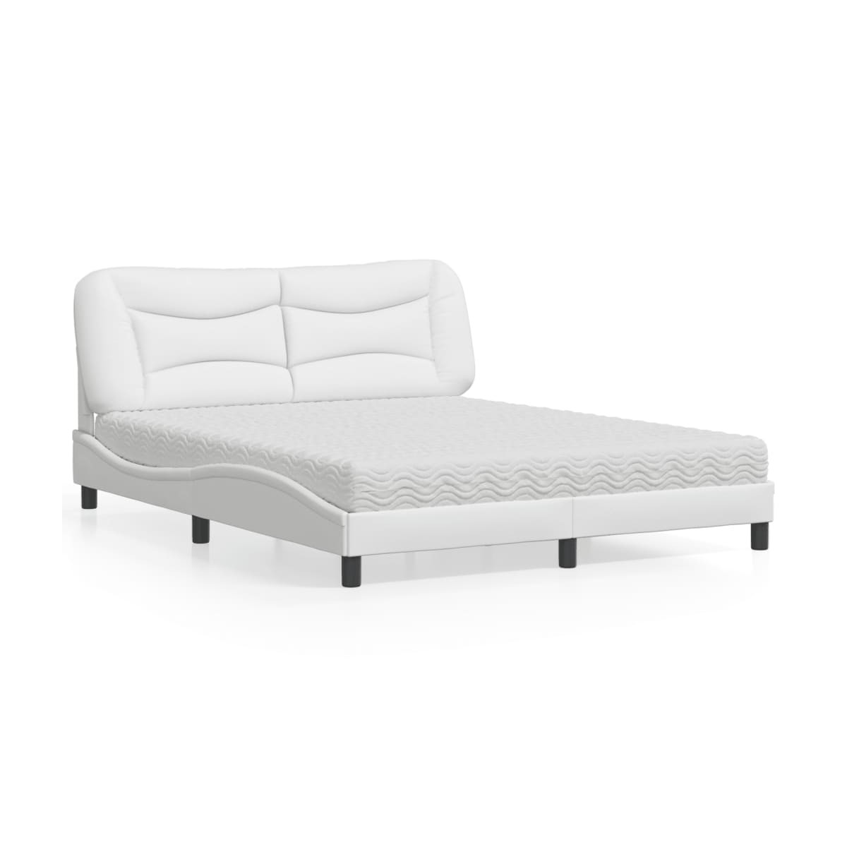 ¡Consigue tener un sueño más reparador en esta cama con colchón! Es un aporte acogedor para cualquier dormitorio. Material duradero: El cuero sintético de primera calidad es un material muy duradero. Es resistente a las manchas, por lo que es fácil de limpiar con un paño húmedo. Además, la superficie lisa da un aspecto lujoso y la belleza del cuero auténtico.Listones robustos: Los listones de madera contrachapada proporcionan una buena distribución del peso, lo que garantiza que el colchón se mantenga en tu sitio con cada giro y vuelta del cuerpo mientras duermes.Excelente apoyo: El cabecero de la cama te proporciona un excelente apoyo para la espalda mientras estás sentado en la cama para leer o ver la televisión.Colchón de espuma: Este colchón de cama de tela de 3 capas está relleno de espuma de PU 22D para ofrecer un confort óptimo. Alivia el cansancio y favorece la circulación sanguínea, con el fin de ofrecerte una relajación completa y una buena calidad de sueño. Además, el colchón está disponible en dureza H2 y H3, por lo que solo tienes que girarlo para elegir la dureza que más te convenga.Diseño lateral ondulado: El look ondulado de la estructura de la cama es elegante y sofisticado, agregando un toque moderno y elegante a tu decoración, convirtiéndolo en el foco de atención de tu dormitorio.