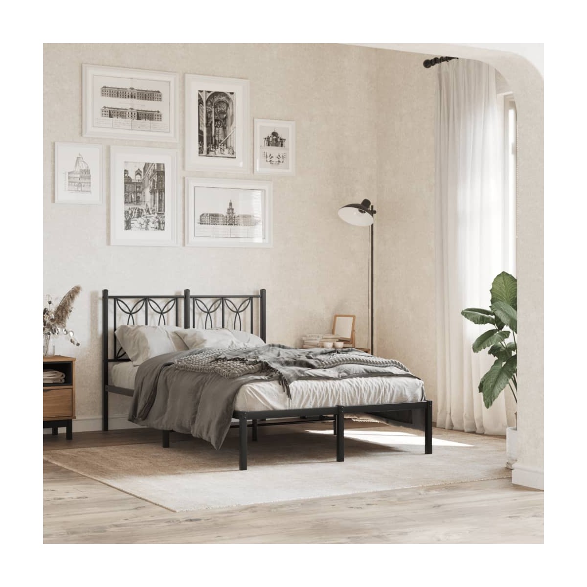 Si estás buscando una estructura de cama robusta para el dormitorio, ¡esta clásica estructura de cama con un diseño elegante y atemporal es la elección perfecta para ti! Estructura estable y duradera: El acero es fuerte, estable y duradero, lo que lo convierte en la opción ideal para una amplia gama de aplicaciones, desde la fabricación de muebles hasta la construcción.Listones y patas de metal: La estructura metálica de la cama se completa con patas centrales y listones de metal con el fin de ofrecer al colchón el soporte y la transpirabilidad que tanto necesita.Espacio de almacenamiento adicional: Para mayor comodidad, la cama de invitados también dispone de un espacio debajo para guardar las cajas de almacenaje y que no se vean.Excelente apoyo: El cabecero de la cama te ofrece un excelente soporte para la espalda mientras estás sentado en la cama leyendo o mirando televisión. Información útil:El colchón no está incluido con la cama. Disponemos de una variada selección de colchones. Puedes echar un vistazo a nuestra tienda para buscar el colchón correspondiente.