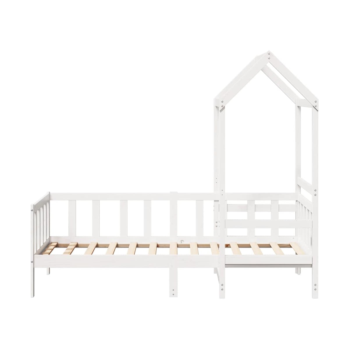 Este versátil juego de sofá cama y banco de madera se puede utilizar como juego de cama en el dormitorio y también es ideal como juego de sofá en la sala de estar. Se adapta perfectamente a tus diferentes necesidades, lo que te proporciona mucho espacio para dormir y descansar. Madera de pino maciza: La madera de pino maciza es un bonito material natural. La madera de pino tiene vetas rectas, y los nudos dan al material su distintivo aspecto rústico.Barras de cama de 3 lados: Esta cama tiene un diseño único en el lateral de la cama, que proporciona una sensación de seguridad y además añade un toque de estilo sofisticado a tu hogar.Diseño de listones: El somier de madera proporciona una mejor circulación del aire para mantener el colchón fresco durante más tiempo, además de mejorar la capacidad de carga de la cama y de asegurar su estabilidad.Espacio de almacenamiento adicional: Aprovecha al máximo el espacio que hay debajo de la cama para guardar varios objetos. Ideal para guardar cajas para organizar tu ropa, juguetes o edredones.Práctico respaldo: El banco está diseñado con un respaldo para que puedas relajar tu cuerpo con más comodidad. Información útil:El colchón no está incluido con la cama. Disponemos de una variada selección de colchones. Puedes echar un vistazo a nuestra tienda para buscar el colchón correspondiente.