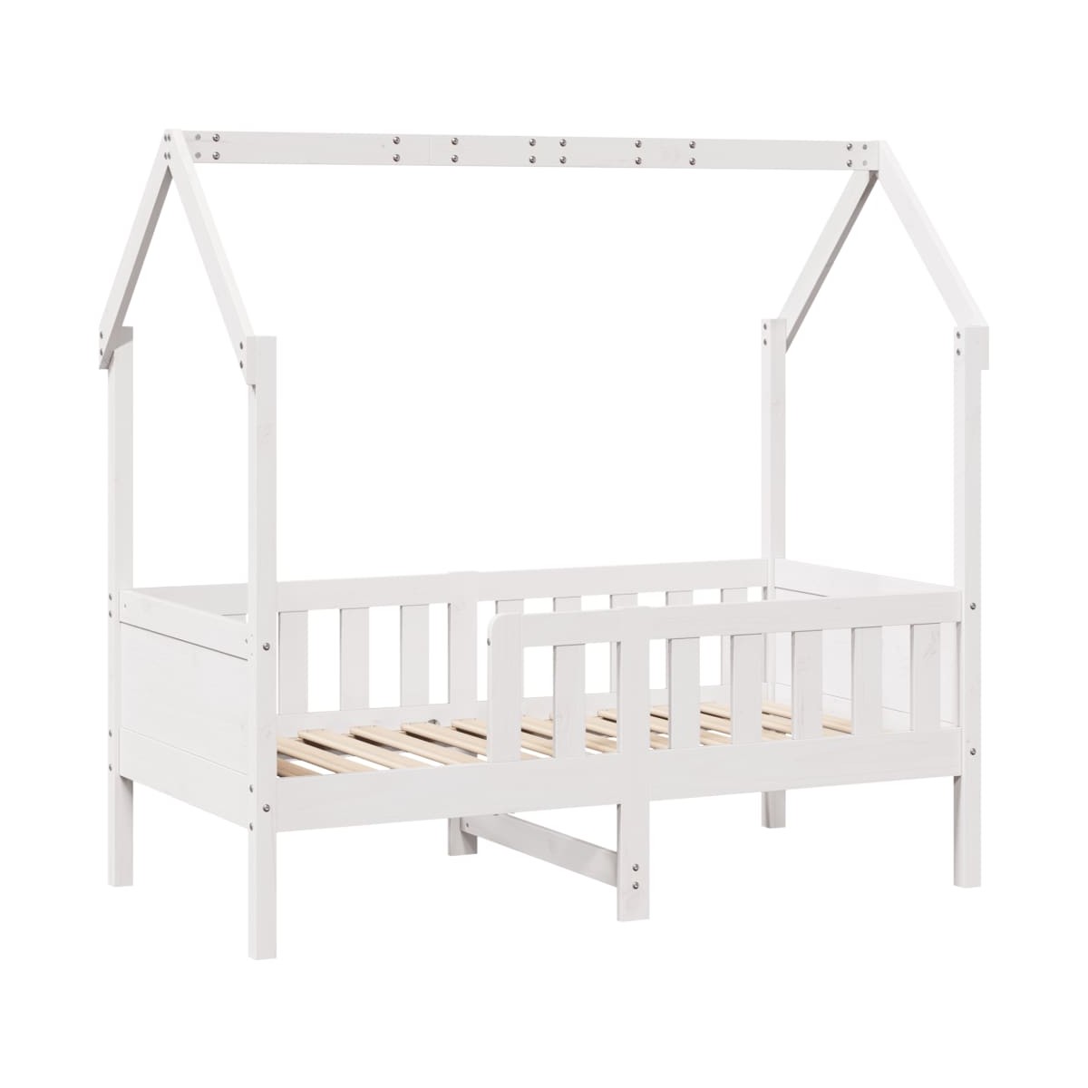 A tu hijo le encantará esta fantástica estructura de cama para niños con forma de casa de madera, tanto si está soñando con su próxima aventura como si se está durmiendo.Estructura estable y duradera: La madera de pino maciza es conocida por su resistencia y durabilidad. Sus vetas rectas y sus característicos nudos contribuyen a su encanto rústico.Diseño de casa divertido: Esta estructura de cama inspirada en una divertida casa transforma la hora de dormir en una aventura para los niños. Proporciona un lugar acogedor para la hora de dormir y una zona lúdica para el juego imaginativo.Barandillas para mayor seguridad: Esta estructura de cama está equipada con barandillas laterales para evitar que tu hijo se caiga de la cama mientras duerme.Estructura de techo abierto DIY: La estructura de techo abierto ofrece infinitas posibilidades de diseño, lo que te permite colgar fácilmente decoraciones o acoplar una tienda de juegos para crear un espacio realmente mágico y personalizado.Amplio espacio de almacenamiento bajo la cama: Este estructura de cama está diseñado con un amplio espacio debajo para cajas de almacenamiento, cestas, cajones y mucho más.Información útil:El colchón no está incluido con la cama. Disponemos de una variada selección de colchones. Puedes echar un vistazo a nuestra tienda para buscar el colchón correspondiente.