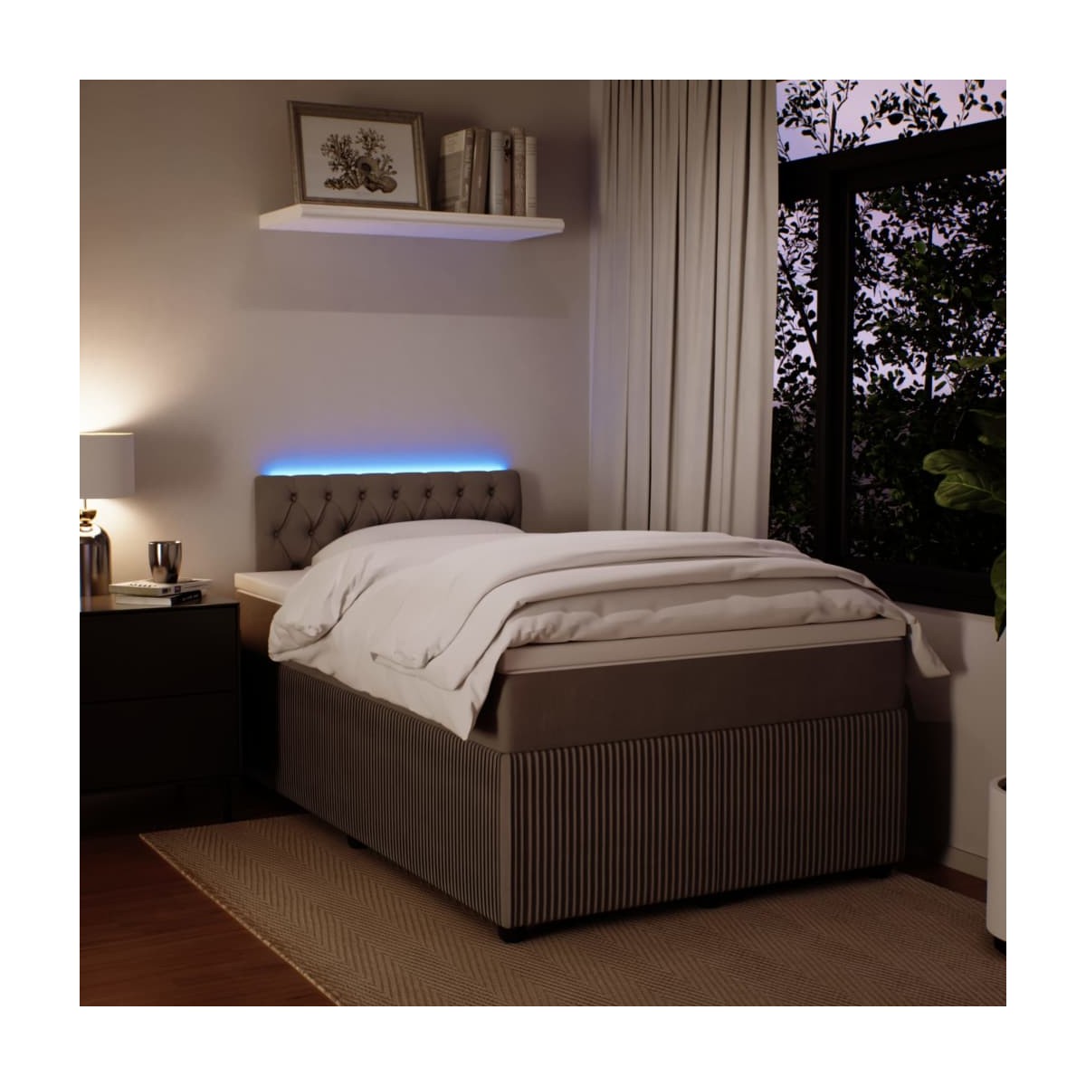 Utiliza esta cama de muelles para disfrutar de un sueño reparador. Te ofrece la máxima relajación y un sueño placentero. Material suave y cómodo: La tela de terciopelo ofrece una superficie suave y lisa que proporciona una agradable sensación contra el tacto, aportándole calidez y el máximo confort.Colchón de muelles ensacados: Este colchón de muelles ensacados cuenta con muelles ensacados individuales que funcionan de forma independiente para proporcionar un apoyo personalizado reaccionando únicamente a la presión de cada zona. Este diseño evita que se enrolle y reduce la transferencia de movimiento en comparación con los colchones tradicionales de bobina abierta. Cada muelle ensacado sostiene el cuerpo individualmente.Luces LED para un ambiente agradable: Esta cama cuenta con luces LED que se pueden ajustar fácilmente para crear un espectáculo de luces personalizado. Puedes personalizar los modos, los colores y el brillo para mejorar el ambiente de tu espacio interior.Cubrecolchón cómodo: Este cubrecolchón mejora el soporte y la comodidad con su superficie suave y transpirable al tiempo que prolonga la vida útil de su colchón. Su funda extraíble permite un fácil lavado, lo que facilita el mantenimiento. Información útil:El producto tiene un conector USB que necesita una fuente de alimentación USB certificada de 5 V (no incluida).Por razones de higiene, el colchón no puede devolverse si se ha quitado o abierto el embalaje.Únicamente puedes cortar por la parte con el símbolo de las tijeras y únicamente la parte con el USB seguirá funcionando como antes.