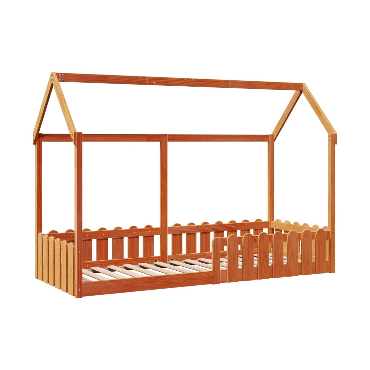 A tu hijo le encantará esta fantástica estructura de cama para niños con forma de casa de madera, tanto si está soñando con su próxima aventura como si se está durmiendo.Estructura estable y duradera: La madera de pino maciza es conocida por su resistencia y durabilidad. Sus vetas rectas y sus característicos nudos contribuyen a su encanto rústico.Diseño de casa divertido: Esta estructura de cama inspirada en una divertida casa transforma la hora de dormir en una aventura para los niños. Proporciona un lugar acogedor para la hora de dormir y una zona lúdica para el juego imaginativo.Cama de piso bajo: Este marco de cama está diseñado específicamente para estar cerca del suelo, lo que hace que sea más seguro y accesible para que tu hijo se mueva y se meta y salga de la cama de forma independiente.Barandillas para mayor seguridad: Esta estructura de cama está equipada con barandillas laterales para evitar que tu hijo se caiga de la cama mientras duerme.Estructura de techo abierto DIY: La estructura de techo abierto ofrece infinitas posibilidades de diseño, lo que le permite colgar fácilmente decoraciones o colocar una carpa de juego para crear un espacio verdaderamente mágico y personalizado.Información útil:El colchón no está incluido con la cama. Disponemos de una variada selección de colchones. Puedes echar un vistazo a nuestra tienda para buscar el colchón correspondiente.