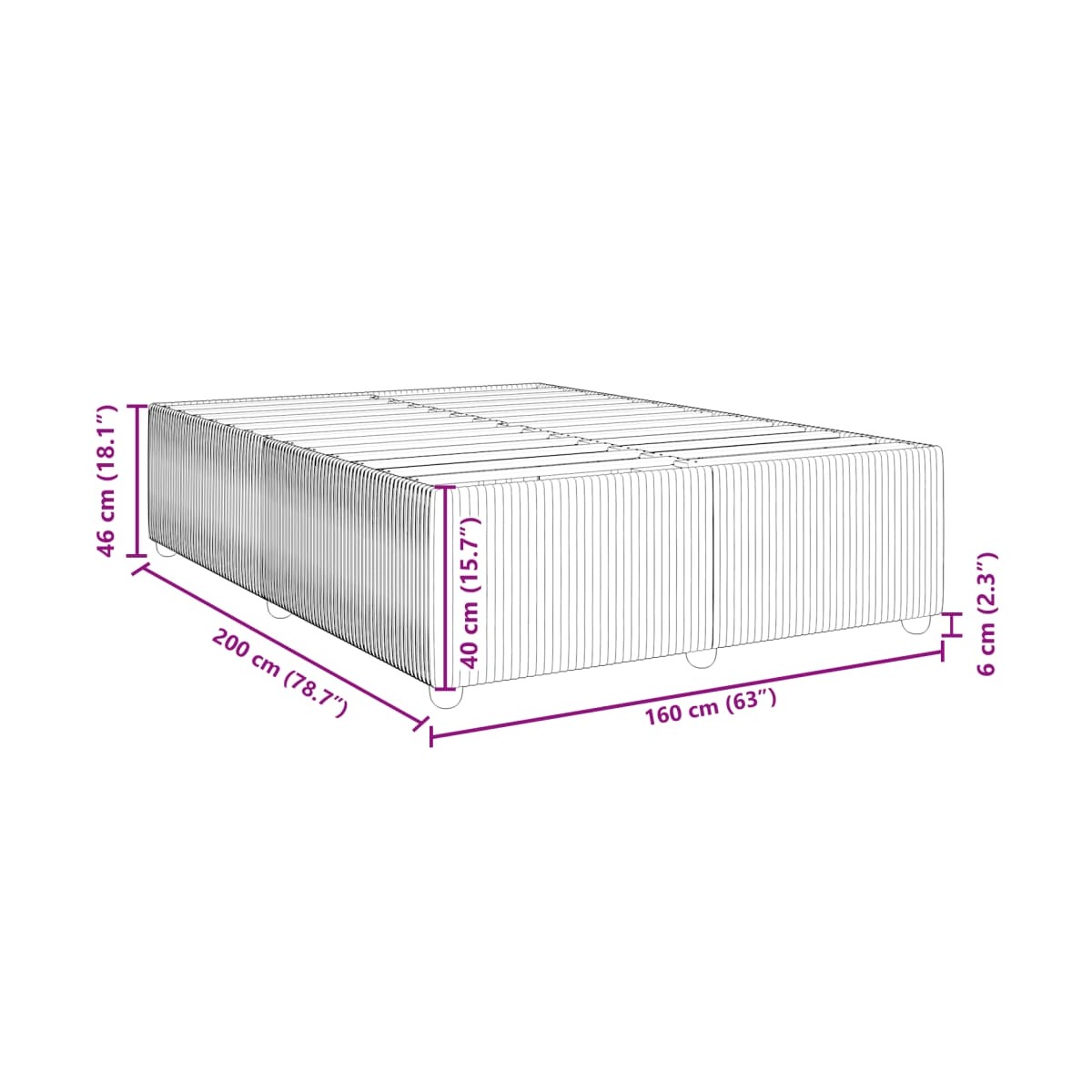 - Dimensiones: 200 x 160 x 46 cm (largo x ancho x alto)