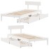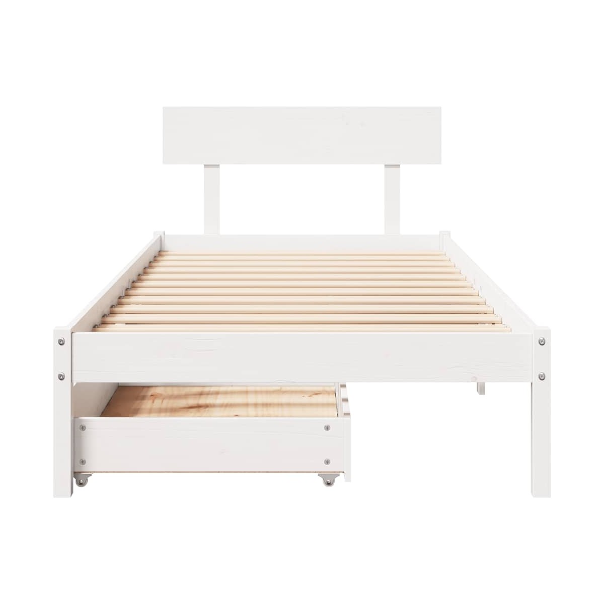 Consigue un sueño más reparador con esta estructura de cama. Es un aporte acogedor para cualquier dormitorio. Estructura estable y duradera: La madera de pino maciza es conocida por su resistencia y durabilidad. Sus vetas rectas y sus característicos nudos contribuyen a su encanto rústico.Somier de láminas para un soporte óptimo: La estructura de cama está equipada con un somier de láminas para el apoyo y la transpirabilidad del colchón.Aprovecha al máximo el espacio: Esta estructura de cama cuenta con dos cajones debajo, que proporcionan almacenamiento para artículos como ropa de cama extra, ropa de temporada y juguetes.Maniobrabilidad sin esfuerzo: Este cajón de almacenamiento bajo la cama cuenta con cuatro ruedas, que proporcionan una maniobrabilidad suave y sin esfuerzo para deslizarse dentro y fuera de debajo de tu cama. Información útil:El colchón no está incluido con la cama. Disponemos de una variada selección de colchones. Puedes echar un vistazo a nuestra tienda para buscar el colchón correspondiente.