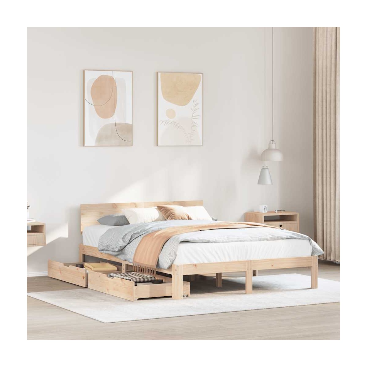 Consigue un sueño más reparador con esta estructura de cama. Es un aporte acogedor para cualquier dormitorio. Estructura estable y duradera: La madera de pino maciza es conocida por su resistencia y durabilidad. Sus vetas rectas y sus característicos nudos contribuyen a su encanto rústico.Somier de láminas para un soporte óptimo: La estructura de cama está equipada con un somier de láminas para el apoyo y la transpirabilidad del colchón.Espacio de almacenamiento extra: Esta base de cama cuenta con dos cajones debajo, lo que proporciona almacenamiento para artículos como ropa de cama, ropa de temporada y juguetes.Cabecero versátil: Este somier viene con un cabecero que proporciona un excelente soporte para la espalda cuando te sientas en la cama para leer o ver la televisión, a la vez que sirve como elemento decorativo.Maniobrabilidad sin esfuerzo: Este cajón de almacenamiento bajo la cama cuenta con cuatro ruedas, que proporcionan una maniobrabilidad suave y sin esfuerzo para deslizarse dentro y fuera de debajo de tu cama. Información útil:El colchón no está incluido con la cama. Disponemos de una variada selección de colchones. Puedes echar un vistazo a nuestra tienda para buscar el colchón correspondiente.