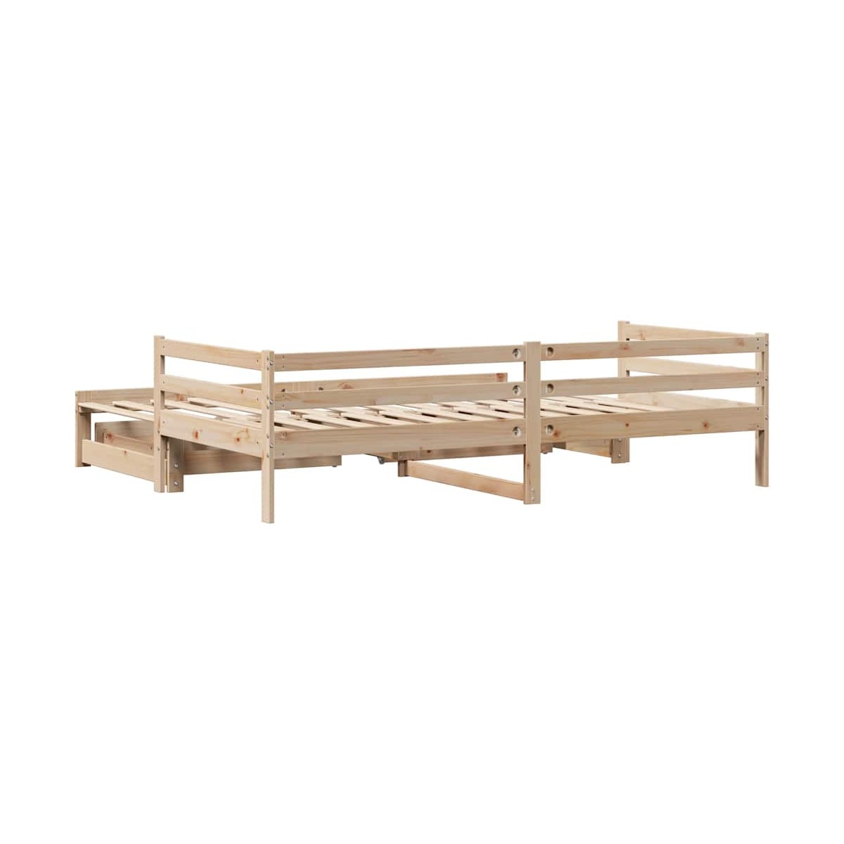 Este sofá cama 2 en 1 con cama nido, que sirve como sofá y cama, es un complemento práctico y llamativo para tu salón o dormitorio. Estructura estable y duradera: La madera de pino maciza es conocida por su resistencia y durabilidad. Sus vetas rectas y sus característicos nudos contribuyen a su encanto rústico.Sofá cama versátil: El sofá cama funciona como sofá durante el día y se convierte fácilmente en una cama doble por la noche sacando la cama nido, lo que proporciona una solución práctica para recibir invitados y maximizar el espacio.Listones para un soporte óptimo: El sofá cama se completa con listones para ofrecer un soporte esencial y transpirabilidad a tu colchón.Amplio espacio de almacenamiento: Esta cama de invitados tiene dos cajones que brindan un amplio espacio para guardar ropa, calcetines, juguetes, cojines, etc. Información útil:El colchón no está incluido con la cama. Ofrecemos una variada selección de colchones. Puedes echar un vistazo a nuestra tienda para buscar el correspondiente colchón.