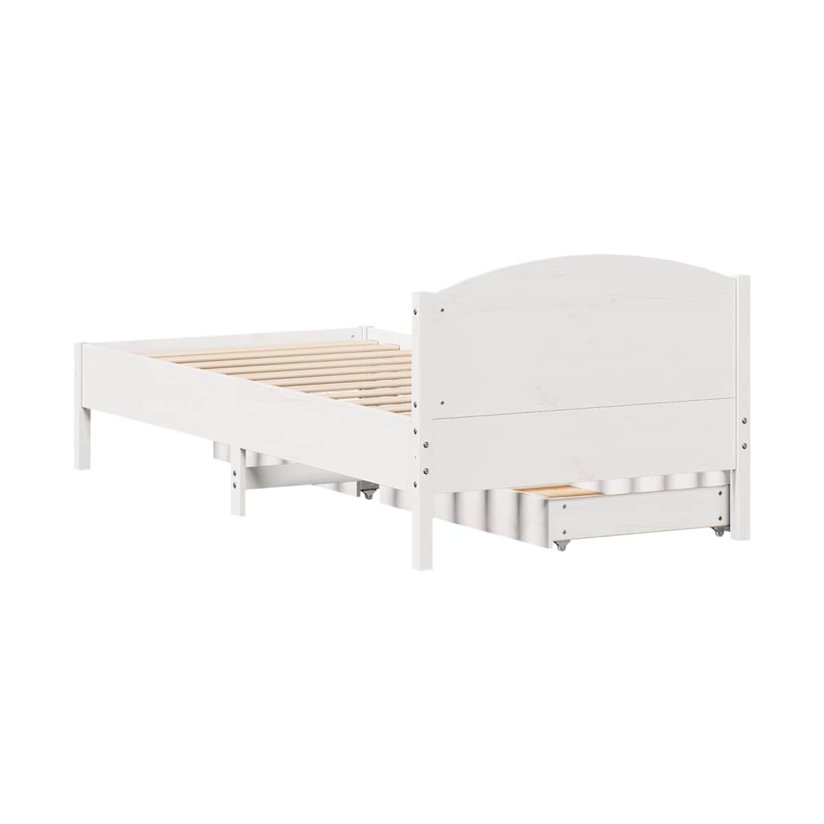 Consigue un sueño más reparador con esta estructura de cama. Es un aporte acogedor para cualquier dormitorio. Estructura estable y duradera: La madera de pino maciza es conocida por su resistencia y durabilidad. Sus vetas rectas y sus característicos nudos contribuyen a su encanto rústico.Somier de láminas para un soporte óptimo: La estructura de cama está equipada con un somier de láminas para el apoyo y la transpirabilidad del colchón.Cabecero versátil: Esta estructura de cama viene con un cabecero que proporciona un excelente soporte para la espalda cuando te sientas en la cama para leer o ver la televisión, a la vez que sirve como elemento decorativo.Aproveche al máximo el espacio: Este somier cuenta con dos cajones debajo, que proporcionan almacenamiento para artículos como ropa de cama extra, ropa de temporada y juguetes.Maniobrabilidad sin esfuerzo: Este cajón de almacenamiento bajo la cama cuenta con cuatro ruedas, que proporcionan una maniobrabilidad suave y sin esfuerzo para deslizarse dentro y fuera de debajo de tu cama. Información útil:El colchón no está incluido con la cama. Disponemos de una variada selección de colchones. Puedes echar un vistazo a nuestra tienda para buscar el colchón correspondiente.