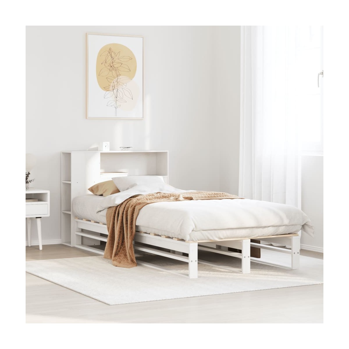 ¡Consigue una mejor noche de sueño reparador con esta cama con estantería! Es un aporte acogedor para cualquier dormitorio. Estructura estable y duradera: La madera de pino maciza es conocida por su resistencia y durabilidad. Sus vetas rectas y sus característicos nudos contribuyen a su encanto rústico. Somier de láminas para un soporte óptimo: La estructura de cama está equipada con un somier de láminas para el apoyo y la transpirabilidad del colchón. Amplio espacio de almacenamiento: El cabecero de estantería ofrece un amplio espacio de almacenamiento para mantener libros, artículos decorativos o pertenencias personales al alcance de la mano, lo que reduce el desorden en el dormitorio. Práctico pie de cama: El pie de cama no solo contribuye a la estabilidad general del marco de la cama, proporcionando un entorno seguro para dormir, sino que también asegura su colchón en su lugar y evita que las mantas, sábanas y otra ropa de cama se caigan del extremo de la cama, manteniendo una apariencia ordenada. Ahorro de espacio: Este cabecero es una opción de ahorro de espacio que puede sustituir la necesidad de una mesilla de noche, ayudando a maximizar el espacio de tu dormitorio, y haciéndolo ideal para espacios pequeños o limitados. Información útil:El colchón no está incluido con la cama. Disponemos de una variada selección de colchones. Puedes echar un vistazo a nuestra tienda para buscar el colchón correspondiente.