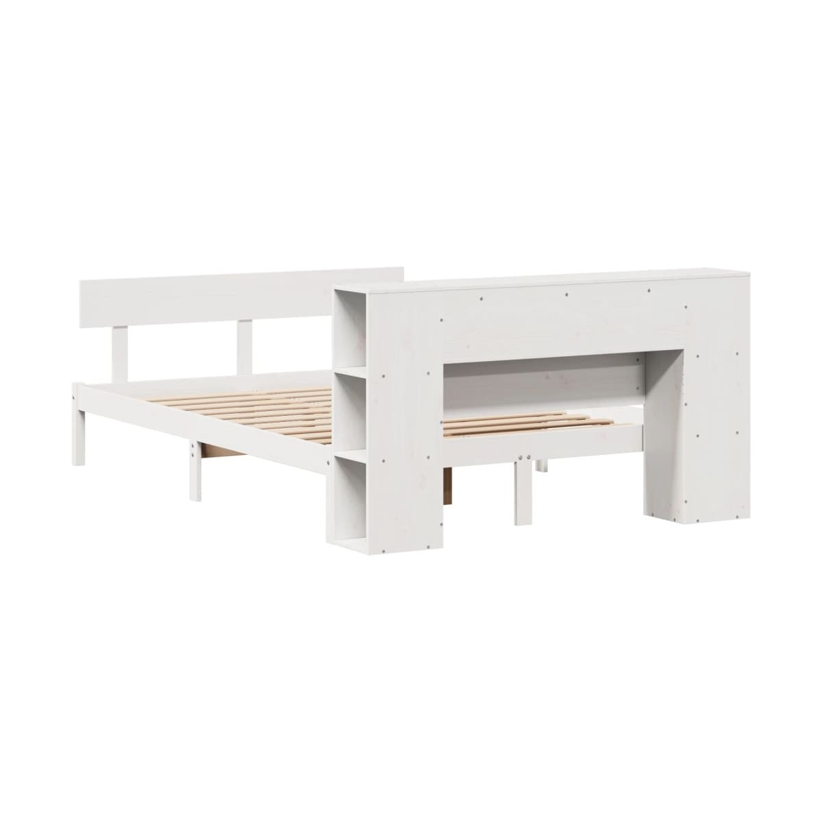 ¡Consigue una mejor noche de sueño reparador con esta cama con estantería! Es un aporte acogedor para cualquier dormitorio. Estructura estable y duradera: La madera de pino maciza es conocida por su resistencia y durabilidad. Sus vetas rectas y sus característicos nudos contribuyen a su encanto rústico.Somier de láminas para un soporte óptimo: La estructura de cama está equipada con un somier de láminas para el apoyo y la transpirabilidad del colchón.Amplio espacio de almacenamiento: El cabecero de estantería ofrece un amplio espacio de almacenamiento para mantener libros, artículos decorativos o pertenencias personales al alcance de la mano, lo que reduce el desorden en el dormitorio.Práctico pie de cama: El pie de cama no solo contribuye a la estabilidad general del marco de la cama, proporcionando un entorno seguro para dormir, sino que también asegura su colchón en su lugar y evita que las mantas, sábanas y otra ropa de cama se caigan del extremo de la cama, manteniendo una apariencia ordenada.Ahorro de espacio: Este cabecero es una opción de ahorro de espacio que puede sustituir la necesidad de una mesilla de noche, ayudando a maximizar el espacio de tu dormitorio, y haciéndolo ideal para espacios pequeños o limitados. Información útil:El colchón no está incluido con la cama. Disponemos de una variada selección de colchones. Puedes echar un vistazo a nuestra tienda para buscar el colchón correspondiente.
