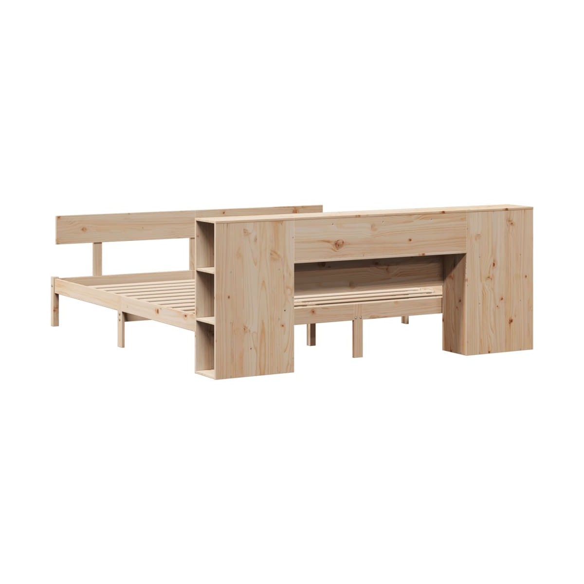 ¡Consigue una mejor noche de sueño reparador con esta cama con estantería! Es un aporte acogedor para cualquier dormitorio. Estructura estable y duradera: La madera de pino maciza es conocida por su resistencia y durabilidad. Sus vetas rectas y sus característicos nudos contribuyen a su encanto rústico.Somier de láminas para un soporte óptimo: La estructura de cama está equipada con un somier de láminas para el apoyo y la transpirabilidad del colchón.Amplio espacio de almacenamiento: El cabecero de estantería ofrece un amplio espacio de almacenamiento para mantener libros, artículos decorativos o pertenencias personales al alcance de la mano, lo que reduce el desorden en el dormitorio.Práctico pie de cama: El pie de cama no solo contribuye a la estabilidad general del marco de la cama, proporcionando un entorno seguro para dormir, sino que también asegura su colchón en su lugar y evita que las mantas, sábanas y otra ropa de cama se caigan del extremo de la cama, manteniendo una apariencia ordenada.Ahorro de espacio: Este cabecero es una opción de ahorro de espacio que puede sustituir la necesidad de una mesilla de noche, ayudando a maximizar el espacio de tu dormitorio, y haciéndolo ideal para espacios pequeños o limitados. Información útil:El colchón no está incluido con la cama. Disponemos de una variada selección de colchones. Puedes echar un vistazo a nuestra tienda para buscar el colchón correspondiente.